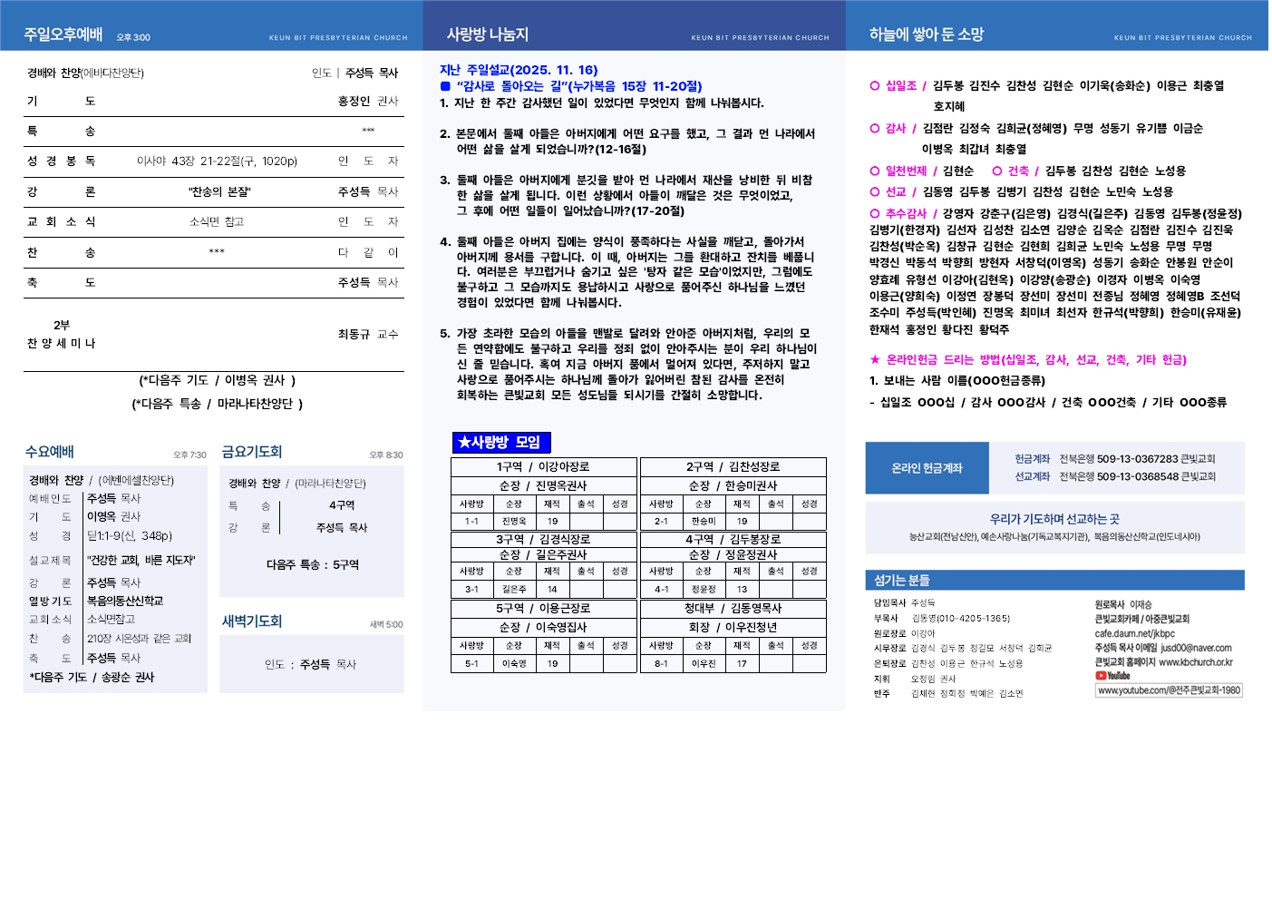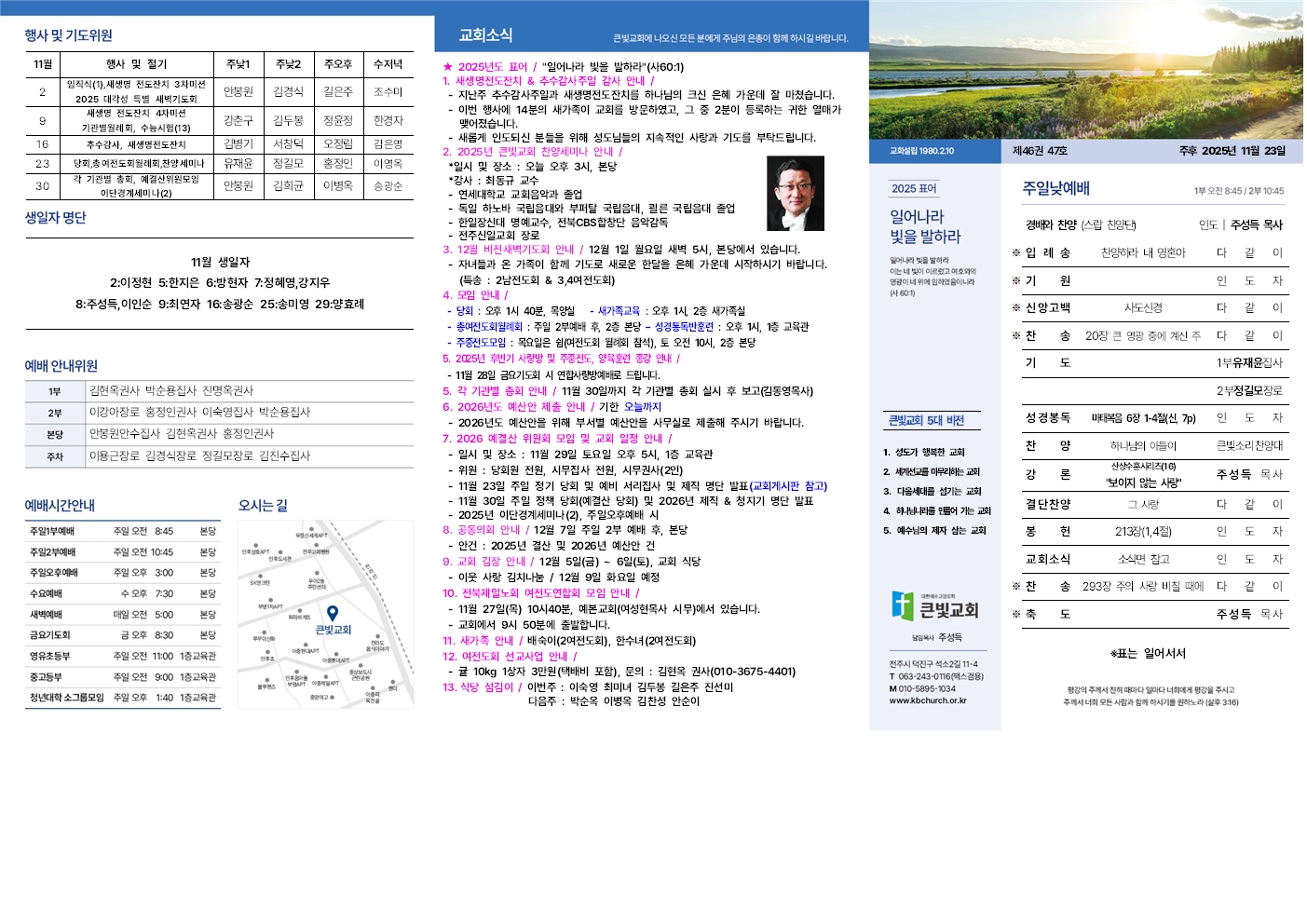 2025년 11월 23일 교회주보 작성자김동영전도사|작성시간25.11.22|조회수19 목록 댓글 0 글자크기 작게가 글자크기 크게가 다음검색 현재 게시글 추가 기능 열기 북마크 공유하기 신고 센터로 신고 댓글 댓글 0 댓글쓰기 답글쓰기 댓글 리스트