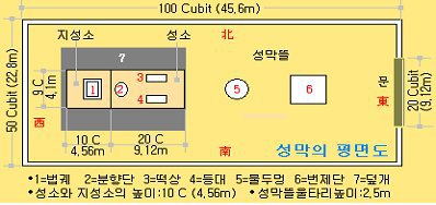 물 두 멍 | 놋으로 만듦, 회막과 단 사이에 둠 | ||
