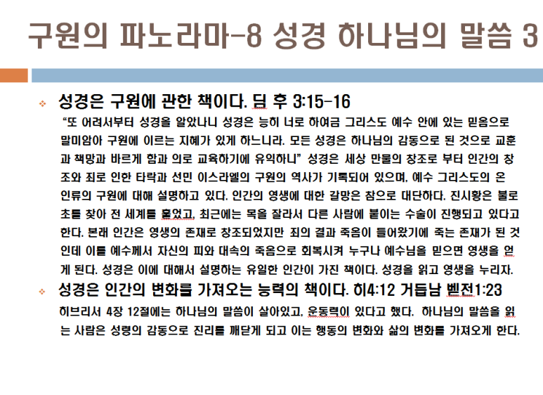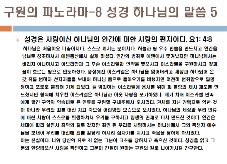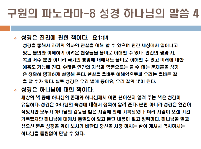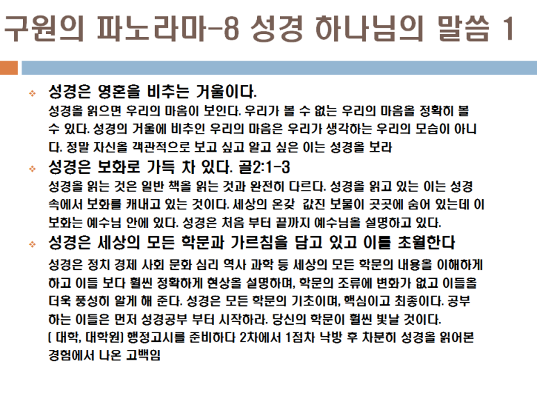 구원의 파노라마 8: 성경에 대하여(About Bible)