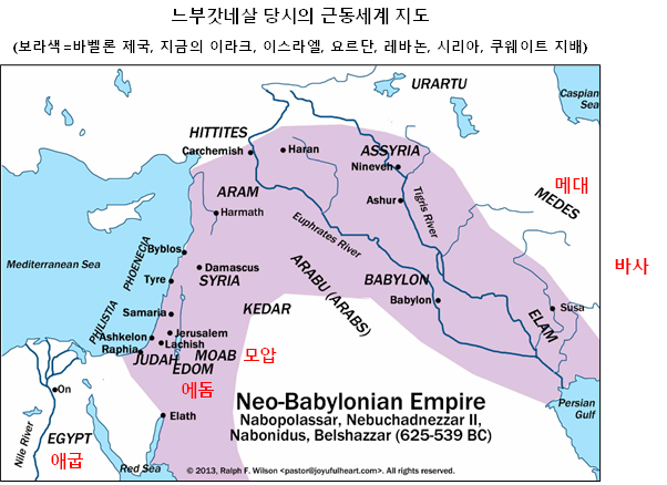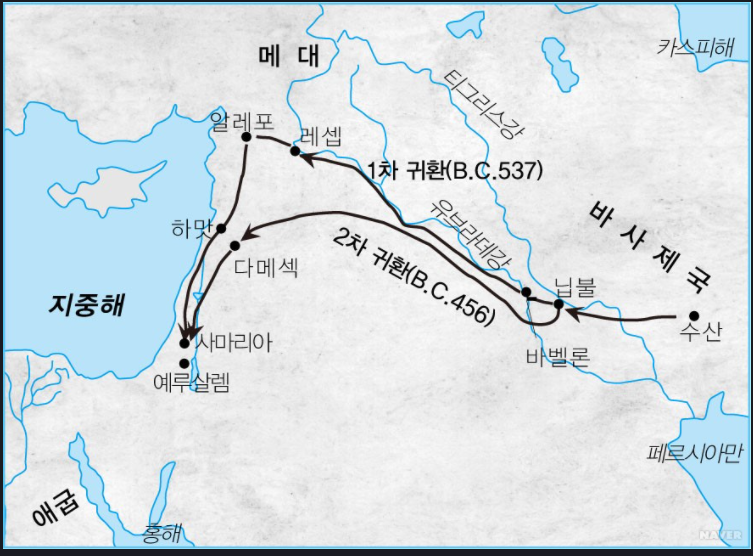 | 신구약 중간사 요약 -중간기의 역사적 배경- 제 1장 남 왕국과 북 왕국의 멸망의 배경 1. 북 왕국의 멸망과 그 배경 주 전 745년경 스가랴(Zechariah)왕이 죽은 후에 약 25년간 이스라엘은 마지막으로 독립을 유지하였다. 이때 앗수르 왕은 티글랏빌레셋 3세(B.C. 745-727)였다. 그는 앗수르를 흥기시켰고 세력을 키워서 오리엔트 세계의 정복에 발돋움을 할 때였다. 그러나 이스라엘은 이때가 바로 혼란기요 암흑시대였다. 그 때에 이스라엘은 왕위가 다섯 번이나 교체되었는데 세 왕이 살해되었다. 앗수르의 연대기에 의하면 사마리아가 포위 된지 3년 만에 멸망하였으며 앗수르왕 사르곤은 그의 비문에서 자기가 즉위한 초기에 사마리아 도성을 정복하고 50대의 전차와 97290 명의 포로들을 끌어왔다고 하였다. 사마리라 도성은 B.C. 722년 함락되어 북이스라엘은 역사의 무대에서 사라지고 북쪽에는 남은 백성들과 타민족의 혼혈로 이루어진 사마리아인들이 신약시대까지 존재하였으며 오늘날도 아주 소수로서 모세오경만 인정하는 작은 부족이 팔레스타인에 존재하고 있다. 2. 남 왕국의 멸망과 그 배경 남 쪽의 유다 왕국은 히스기야의 뒤를 이어 므낫세(B.C. 687-642)가 왕이 되면서 정치, 종교정책이 하루아침에 바뀌어서 사회적으로 우상숭배가 만연하였다. 외교적으로는 친앗시리아 정책으로 일관하였으며 50여 년간 유다의 평화가 유지되었다. 므낫세 이후 그의 아들 아몬이 2년간 통치하다가 암살당했고 그의 아들 요시야(B.C 640-609)가 30여 년간 정권을 잡았다. 요시야는 각 방면에 개혁정책을 실시하여 유다는 평화와 번영의 시기였다. 특히 요시야는 백성들에게 율법 교육을 실시하기도 하며 종교 개혁을 실시하였다. 그러나 요시야는 므깃도에서 이집트 군대와 싸우다가 치명상을 입고 죽고 말았다. 요시야 사후 여호아하스(609), 여호야김(609-598/7)이 이어서 왕이 되었으며 599년 바벨론이 예루살렘에 침략해 왔으며 여호야김의 아들 여호야긴(598-597 3개월간)은 예루살렘이 포위되자 즉각 항복하였다. 이에 바벨론 왕 느부갓네살은 많은 사람들(귀족과 사회 지도층)을 포로로 잡아갔다. 이때 예언자 에스겔도 포로가 되었다. 바벨론 왕은 시드기야(B.C. 597-587)를 왕으로 세웠으나 그는 무능한 가운데 친 이집트파에 밀려 반 바벨론 정책을 취하였으며 이에 시드기야는 B.C. 589년 바벨론에 대하여 반란을 일으켰으나 바벨론의 공격에 패주하다가 체포되었으며, 그의 목전에서 아들들의 죽임을 목격했고 두 눈이 뽑힌 채로 바벨론에 압송ㄹ 되어 죽을 때까지 감옥에 수감되었다. 이에 예루살렘은 완전히 파괴되었고 많은 사람들은 포로로 잡혀가거나 립나로 끌려가 처형되었다. 제 2장 바벨론 포로기의 유다 B.C. 587년 예루살렘은 멸망하여 나라도 없어지고 국가의 제의, 제의적 공동체는 완벽하게 훼파되었다. 그럼에도 불구하고 유대인들은 흩어진 가운데 신앙 공동체를 형성하여 회당(synagogue)을 중심으로 유대교(Judaism)를 탄생시켰다. 한 편 사마리아 지역은 앗시리아 왕들이 강제로 끌어다가 정착시킨 이민족들과 혼합되어 그 순수성을 상실하였다. 1. 587년 이후(587-539) 유대인들의 상황 B.C. 587년의 참상은 대단한 것이었다. 바벨론 군대는 유대를 초토화시켰으며 남은 사람들은 전투와 굶주림, 질병으로 사망하여 중간시대에는 인구 밀도가 희박했다고 한다. 한편 바벨론에 살고 있었던 유대인들은 유대의 정치, 종교, 정신적 지도층으로 이들은 닙푸르(Nippur) 주변에 정착하여 제한적인 자유를 누렸다. 따라서 그들의 가정생활과 지파별로 이루어진 집단 거주로 그들의 본래적인 사회 구조에 따라서 그대로 유지될 수가 있었다. 2. 포로기의 공동체 운동 바 벨론 포로기 중에는 유대 공동체는 성소 대신 종교학교인 회당을 만들어 예배 모임을 가졌으며, 안식일의 비중이 높아졌으며 바벨론인들 사이에서 그들과 반대로 할례가 강조 되었다. 포로기에 야웨 신앙은 강력한 힘을 발휘하여 이방신을 섬기던 이방 민족들이 야웨 신앙에 동참하기도 하였다. 바벨론 유배자들은 비록 숫적으로는 소수였지만 이스라엘의 신앙에 새로운 방향을 설정하고 향후 팔레스타인에서 유대인 공동체를 근본적으로 재건하기 위한 추진력을 기르며 이스라엘의 장래를 설계할 사람들이었다. 드디어 바벨론 제국은 그 군주체제가 몰락하는 가운데 고레스(Cyrus)에게 패망하였고 유대인들은 그를 해방자로 맞이하게 되었다. 제 3장 페르시아 통치 기간의 유다 1. 유대인의 귀환 B.C. 539년 근동 아시아의 패권은 바벨론 제국에서 페르시아 제국으로 넘어갔다. 고레스는 바벨론 왕들과 달리 제국 내의 민족들에게 유화, 관용 정책을 실시하여 그 덕분에 유대인들은 고국으로 돌아오게 되었다. B.C. 537년 제 1차 귀환이 있었다. (42,000명) 그러나 바벨론에는 귀환을 포기한 유대인들이 상당수 있었다. 이들을 디아스포라(Diaspora) 유대인이라 부른다. 고레스의 관용 정책은 포로 시대 이후의 귀환과 성전 재건을 근본적으로 가능케 해주었다. 드디어 귀환과 더불어 왕족 세스밧사르에 의해 성전 건립을 위해서 금전과 헌물이 봉헌 되었으며 바벨론의 디아스포라들도 헌금을 