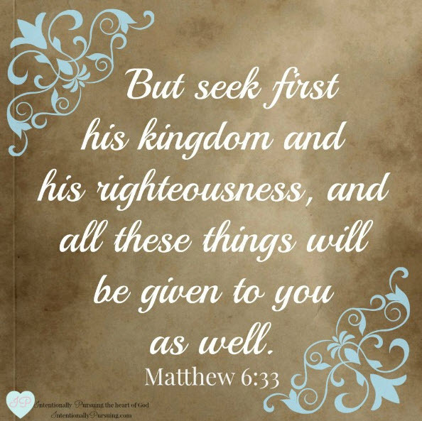 33. But seek first his kingdom and his righteousness, and all these things will be given to you as well.