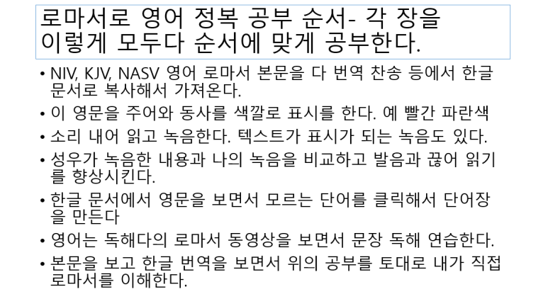 로마서로 영어 정복-영문 로마서 읽기 4- 공부 방법 소개/ 영어 본문 준비, 주어 동사 구분, 끊어 읽기, 단어 찾기. 독해 동영상