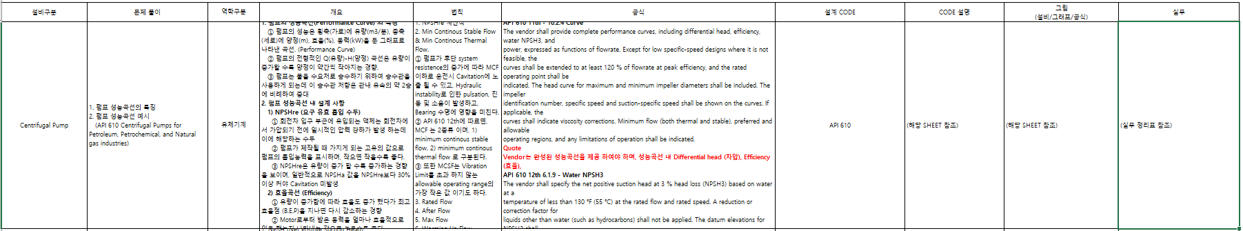 -. 상기 표의 주요는 문제 구분 표의 작성 기분은 설비 구분 문제풀기, 역학구분, 개요, 법칙, 설계 CODE, CODE 설명,