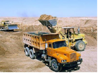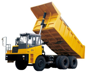 ② 리어 덤프트럭 : 적재함의 뒤쪽이 섀시에 붙어있어 뒤쪽으로 적재함을 기울일수 있는 트럭. 가장 널리 사용