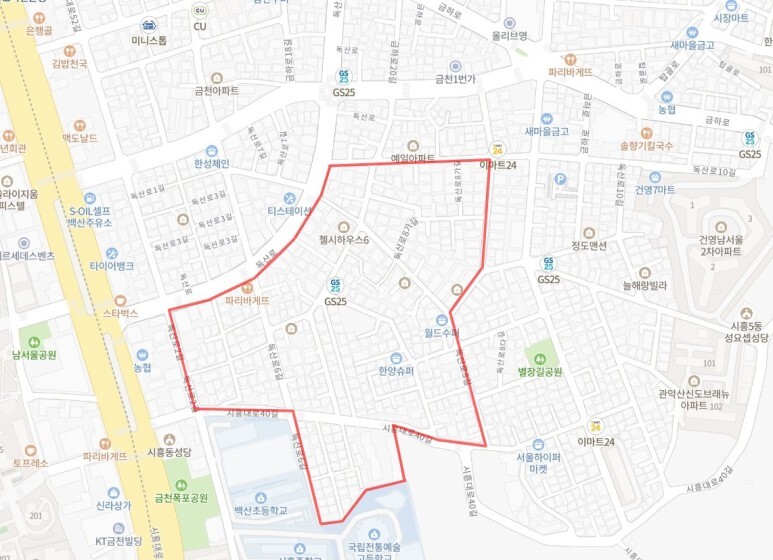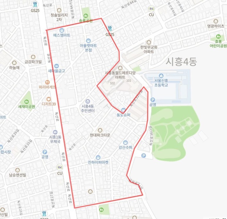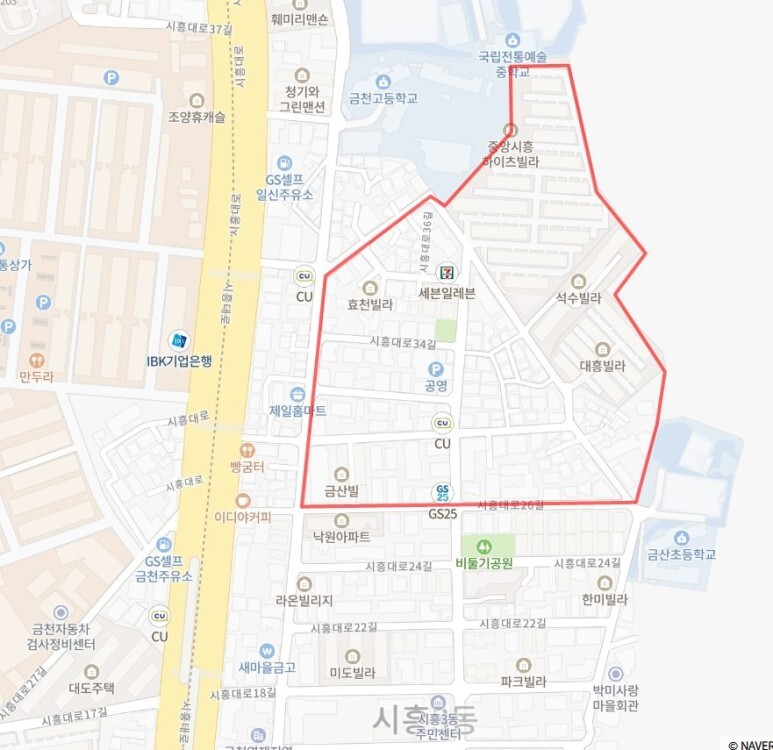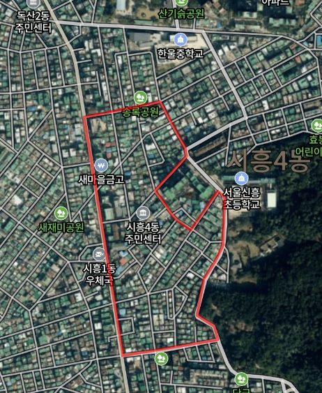 시흥4동 주민센타인근,시흥5동 국립전통예술고 북측 일대를