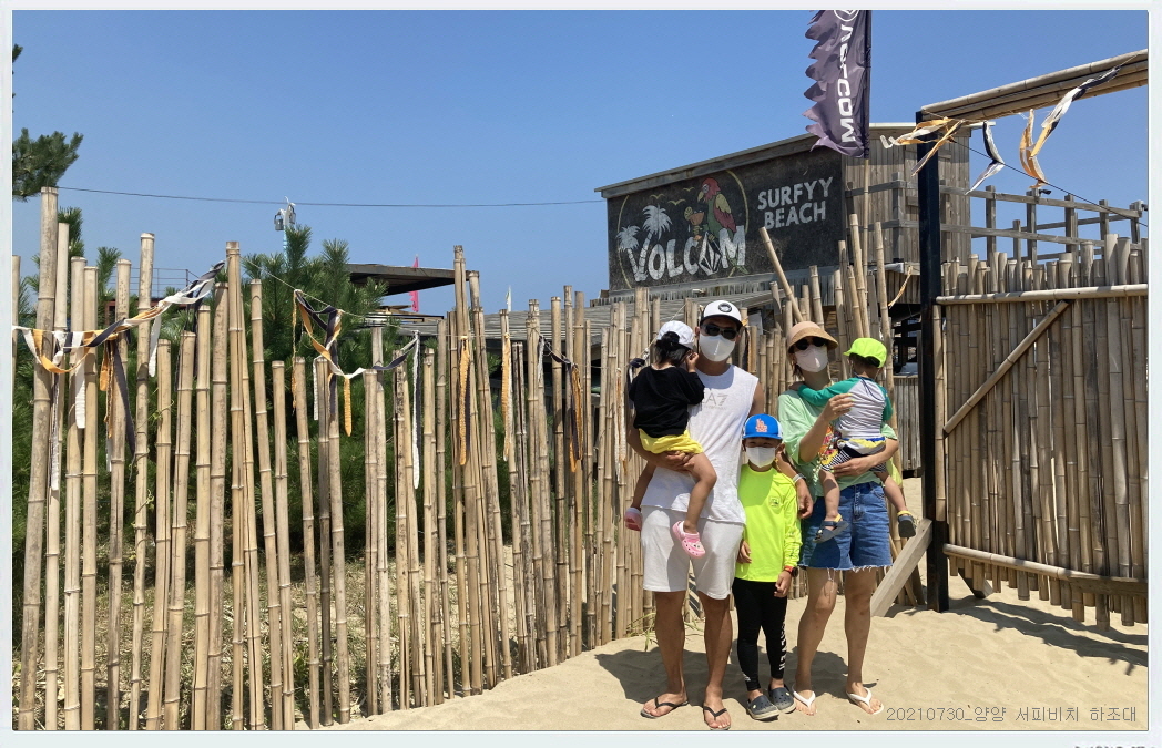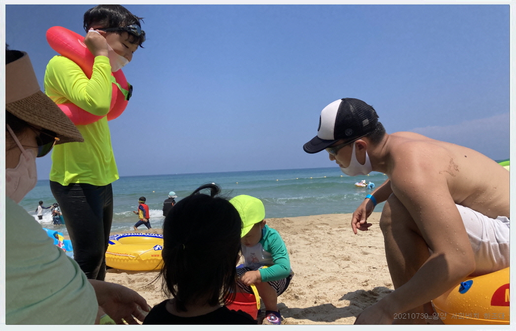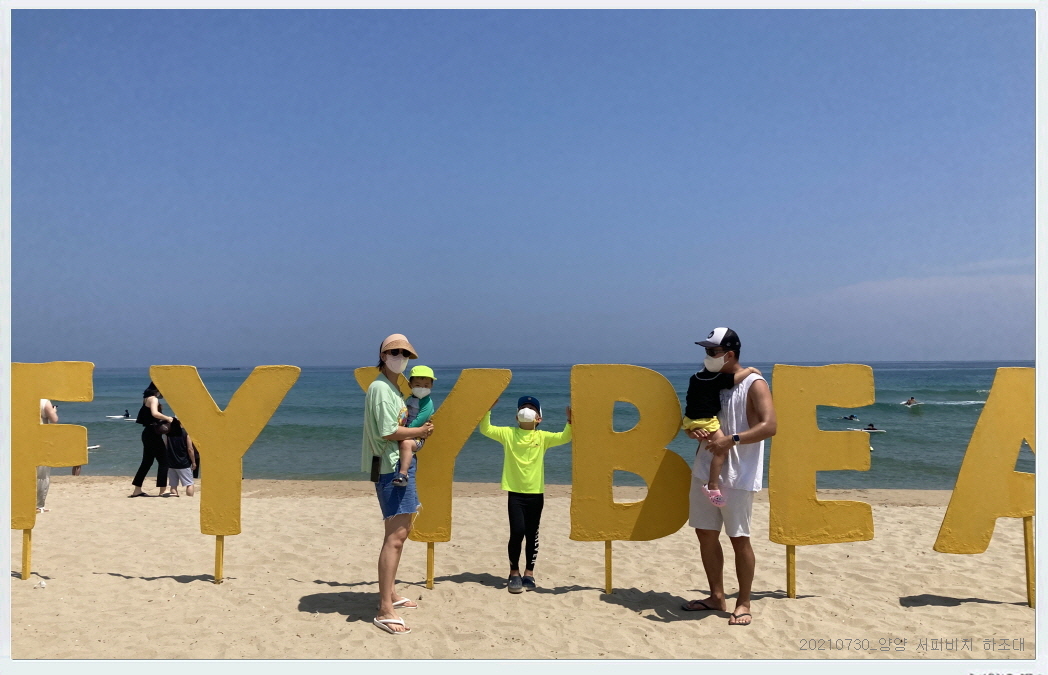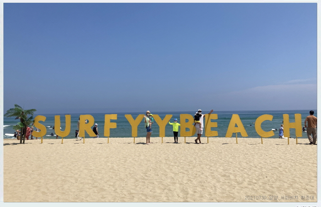 11시 체크아웃 시간에 맞춰 바리바리 짐을 챙겨 속초에서 양양비치콘도로 이동했다. 다둥이 셋과 짐들이 장난 아니게 많다. 말로 하니 쉽지, 실로 쉬운 일이 아닌데 아들 내외는 홀라당 참 잘도 한다. 동행한 어미로서 뭔가 도우려고 하지만 그다지 도울 것도 없이 참 손발이 잘 맞는 부부이고 가족이다. 고기도 먹어본 놈이 맛을 안다고 여행도 자주 다녀본 애들이라 손발이 척척 맞다. 여행 내용이 아가들을 위한 거라 오늘은 주로 해수욕과 서핑을 할 모양이다.