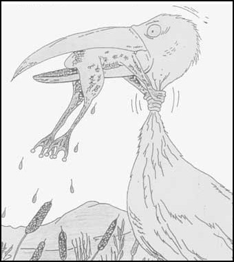 하여튼 그날 이후, 황새에게 머리부터 잡혀먹히게 된 개구리가 황새의 목을 조르고 있는 이 한 컷짜리 유머러스한 그림은 내 책상 앞에 항상 자리 잡고 있다.