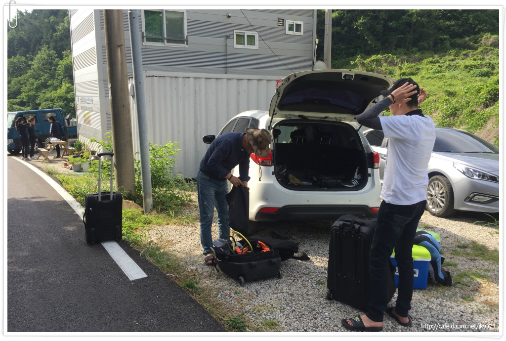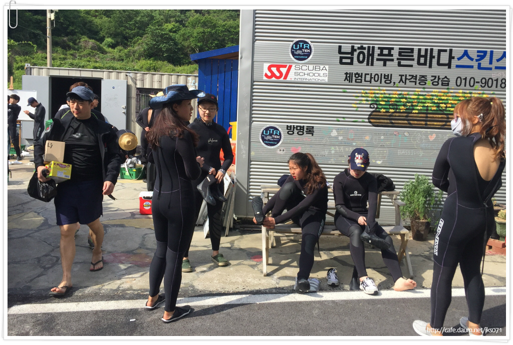 남해푸른바다 리조트에 도착해보니 전날부터 온 손님들 두 팀이 대거로 다이빙 준비를 하고 있었다.