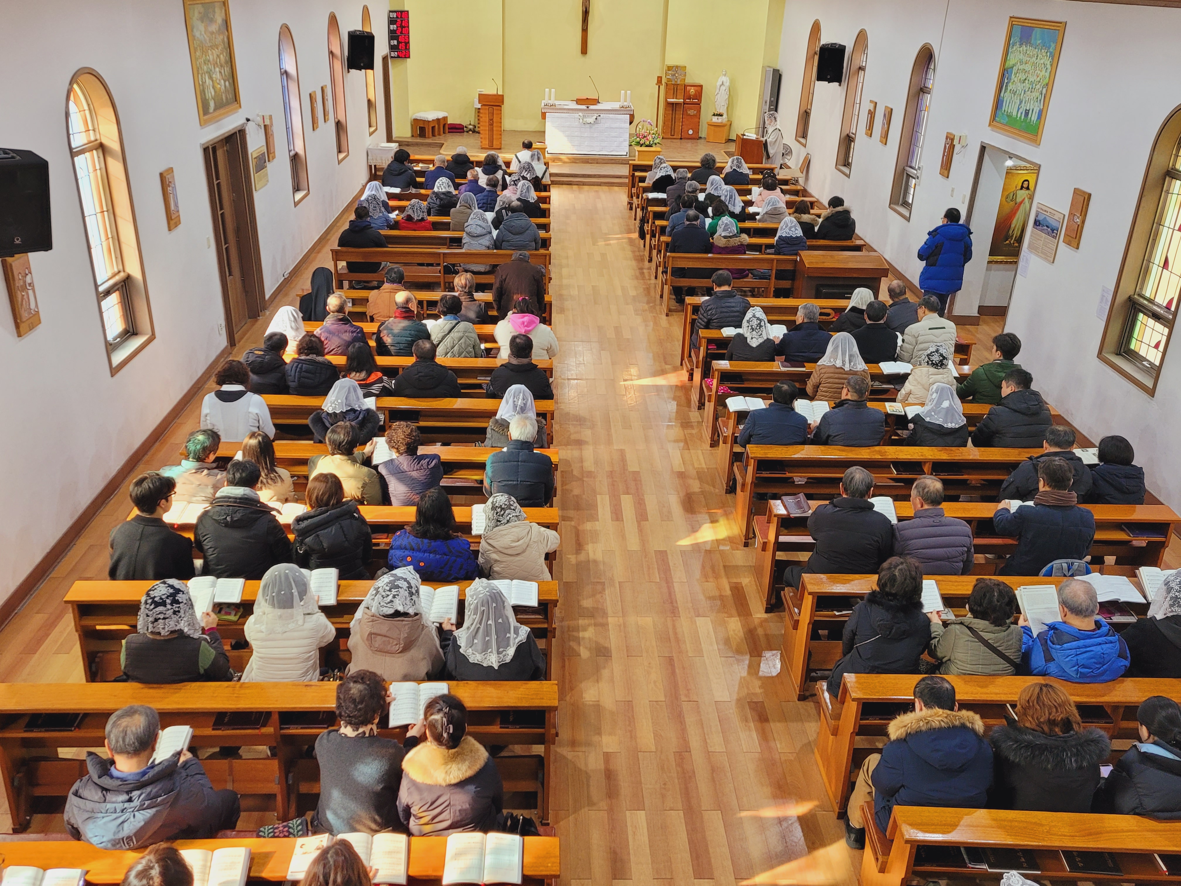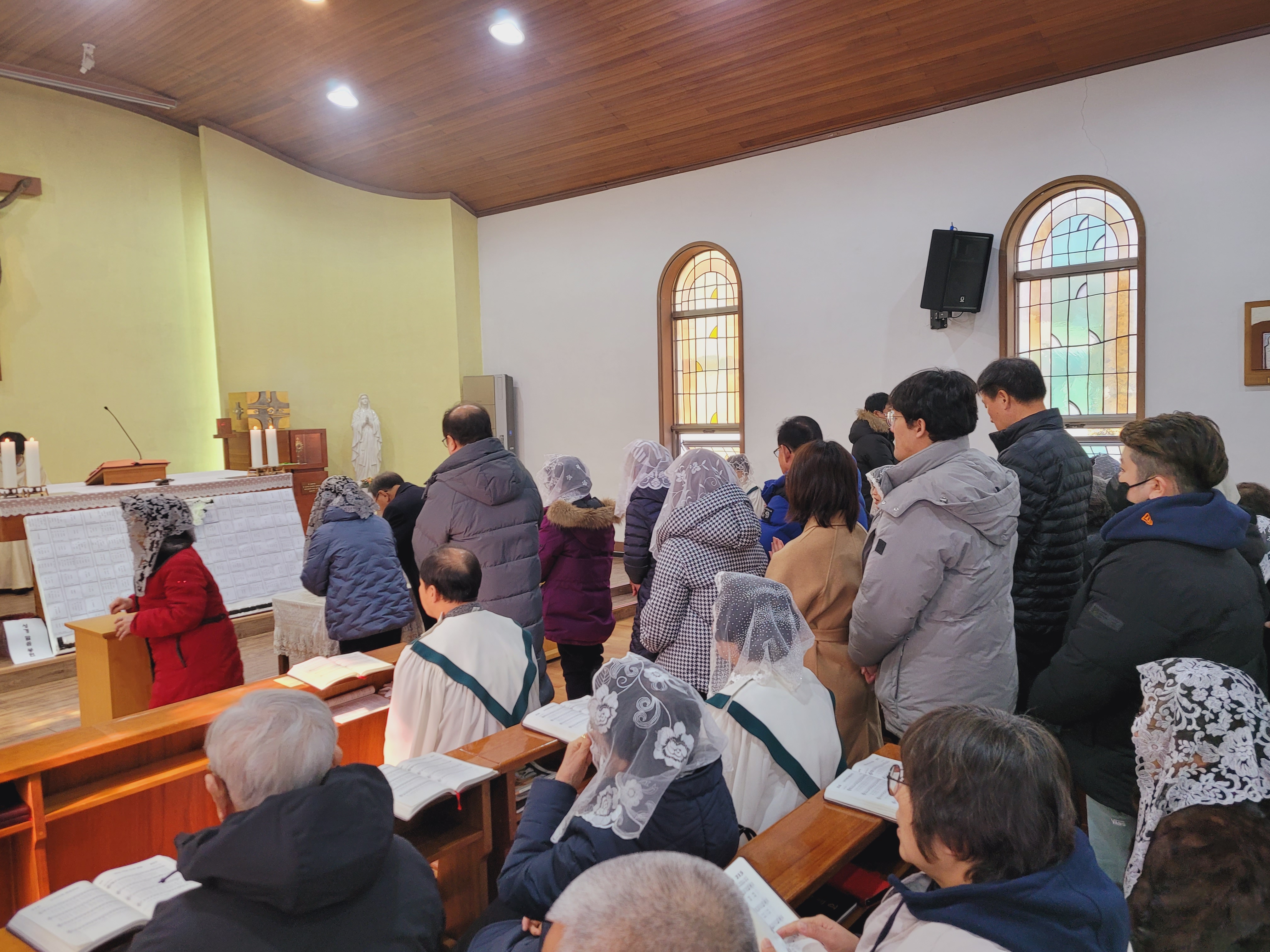 2월 10일 설명절을 맞이하는 주문진 본당에서는 10시 30분 교우들의 짧은 연도를 시작으로 모든 교우들과