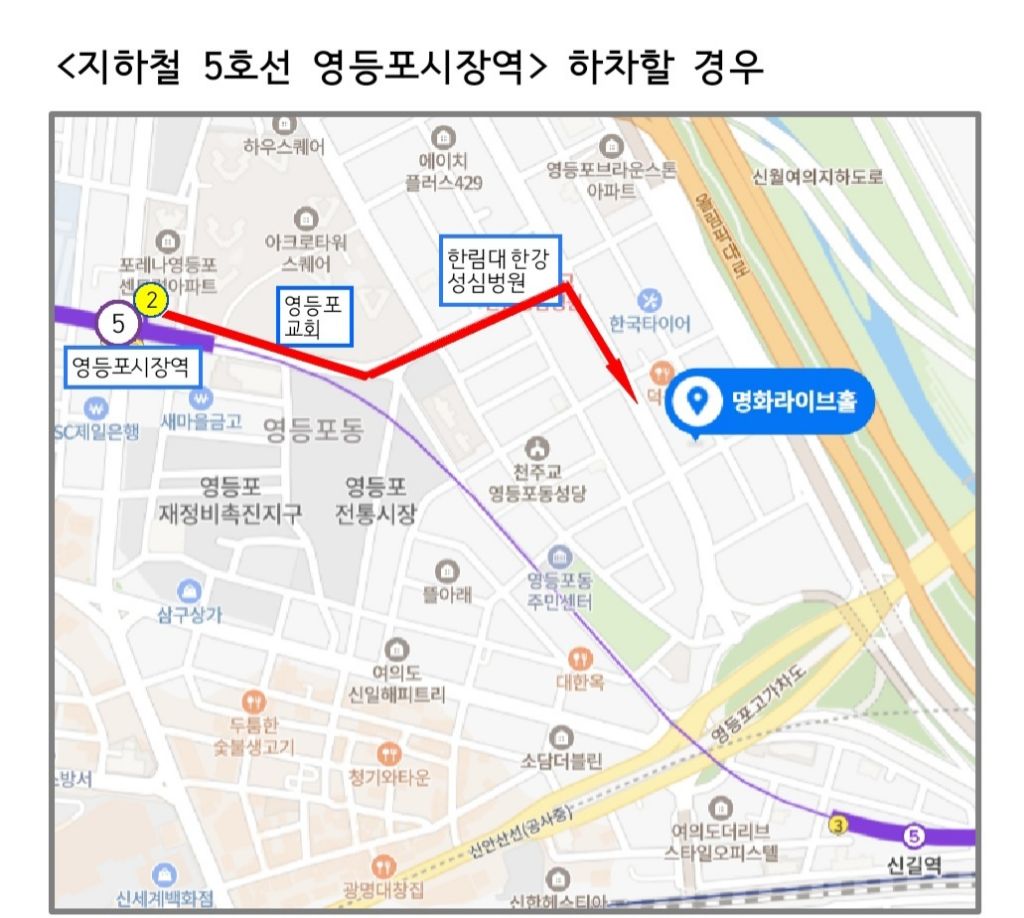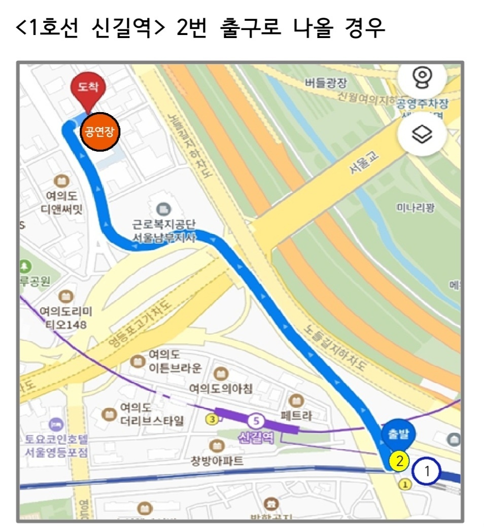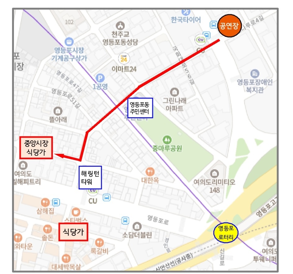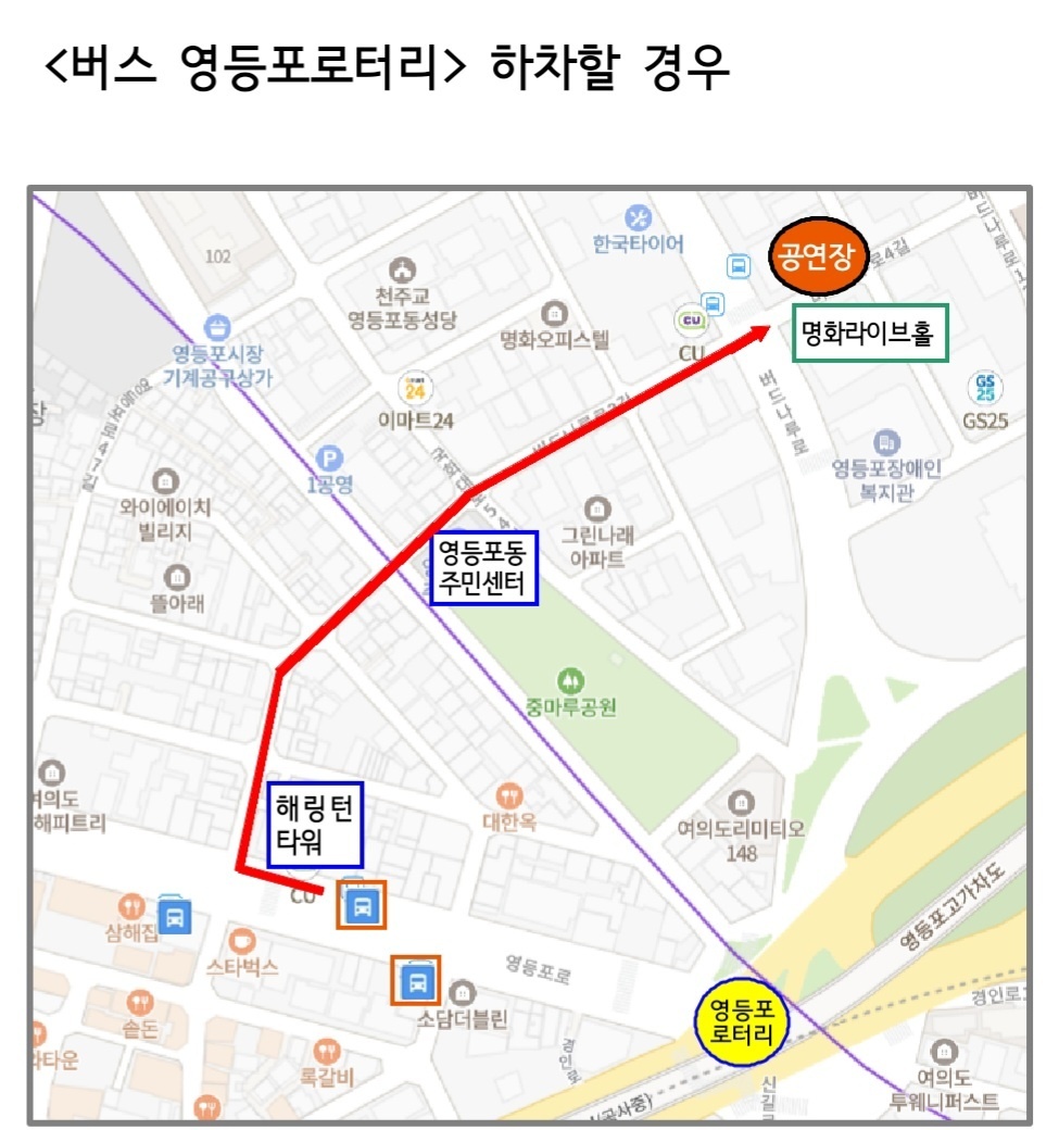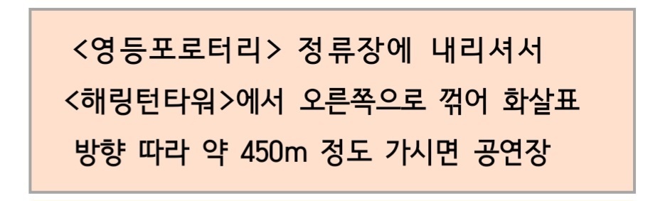 <영등포로터리> 정류장에서 하차 공연장까지 약 450m