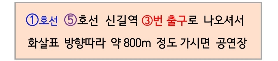 - 공연장 건물내 주차장 이용이 불가하므로 대중교통 이용