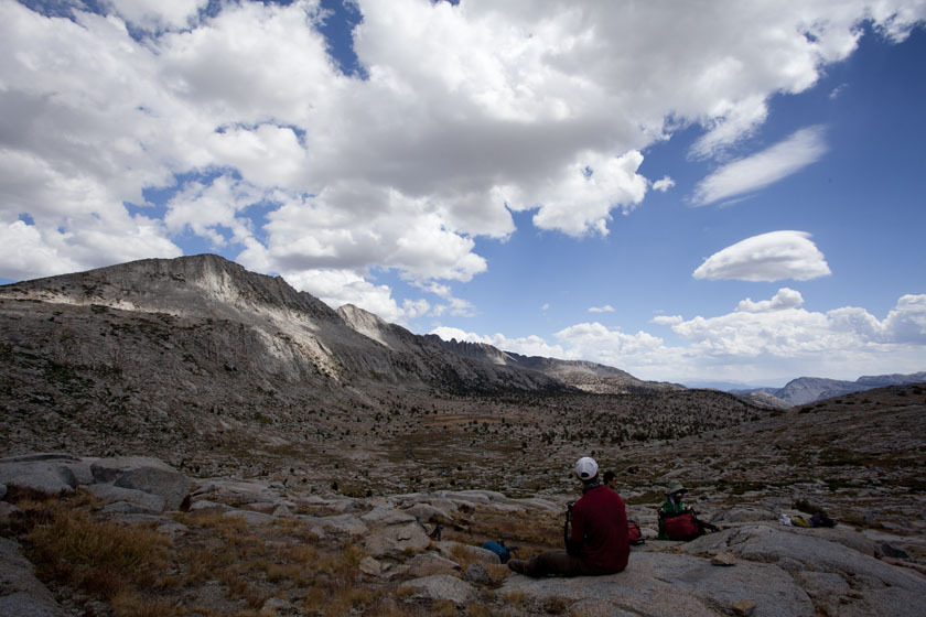 이곳을 가로질러 PCT트레일과의 갈림에서 Shadow Lake ,Garnet Lake 를 지나 첫째날은 23키로를 걸어 Angel Adams 가 남긴 사진으로 유명한 Thousand Island 에서 Camping를 했다. 호수 속의 작고 작은 천개의 섬과 Banner Peak 에 아직 남아 있는 잔설들이 어우려져 호수에 반영이 되고 , 저녁노을과 함께 황홀한 색을 만드는 아름다운 저녁이다 . 우리의 유태공은 처음으로 낚시대를 던지고 ... 낚시면허 두개와 먹잇감과 함께 지불한 170불. 이거 본전이나 뽑을까? 다들 웃음으로 무지개 송어를 기대해 본다. 유태공이 건져 올린 제법 큼직한 두마리의 무지개 송어로 매운탕을... 밤이되면 하늘은 도시처럼 화려해지고 산속의 어둠은 빠르게 찾아온다 8월10일. 앞으로 우리가 마주해야 할 Pass 가 11개, 오늘은 그 중 두개를 넘어야 한다 . Thousand Island 의 황금빛 아침노을을 뒤로하고 , 6시에 출발, 맑은 아침 기운으로 올라 선 고개길 Island Pass ( 10, 203 ft ) 이다. Pass 같지 않은 Pass 이다. 우리가 너무 높은 곳 ( Thousand Island - 2,997 mt ) 에서 잠을 자서 일까? 나도 모르는 사이 쉽게 적응이 되어가고 있는 것인지? 그리고 Rush Creek 을 지나고, 구름도 넘지 못하고 머무는 두 번 째 Donohue Pass (11,056 ft.)를 넘는다. 바람과 함께 화강암의 돌무더기가 정갈하게 널려있는 북쪽으로 내려서면 Mt. Lyell 과 Lyell Glacier 가 보인다. 숨이 턱까지 차오르지만, 간혹 부는 바람과 파란 하늘에 점점이 펼쳐진 구름을 바라보노라면, 어느사이 휴식은 끝나고.... 출발 2분전을 알리는 대장의 목소리가 들린다.
