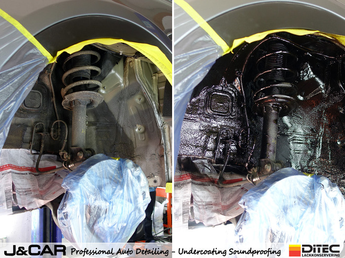 언더코팅제를 뿌려 진동을 잡고 소리를 차단해주는 차음막을 형성해 줍니다.