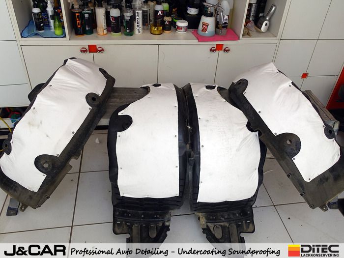 그리고 드러나는 휀다안쪽에 위의 사진처럼 방진재와 흡음폼을 시공합니다.