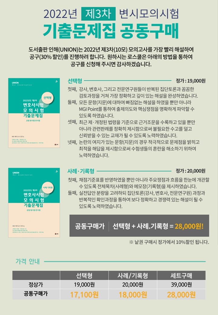 [ 2022 제3차 변시모의시험 기출문제집 ] 에 대한 공동구매를 진행합니다