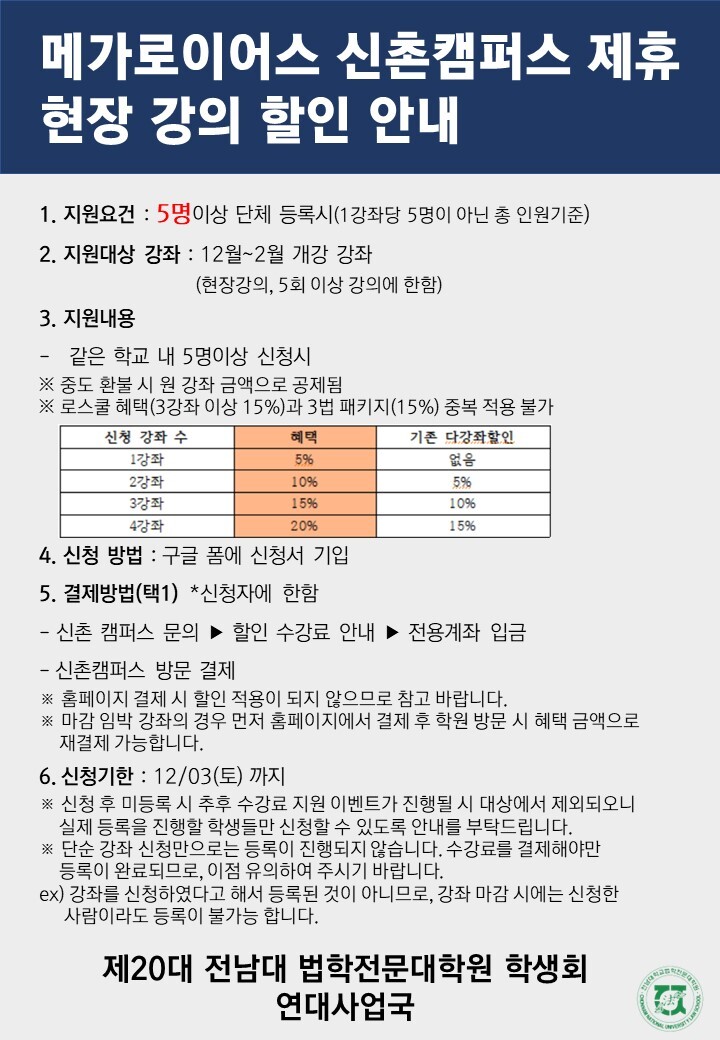 [메가로이어스 현장 강의 제휴 할인 안내] 작성자한지원(14기)|작성시간22.11.16|조회수139 목록 댓글 0 글자크기 작게가 글자크기 크게가 신청 링크 : https://forms.gle/D6hYtg6zu7EApdF19 다음검색 현재 게시글 추가 기능 열기 북마크 공유하기 신고 센터로 신고 댓글 댓글 0 댓글쓰기 답글쓰기 댓글 리스트