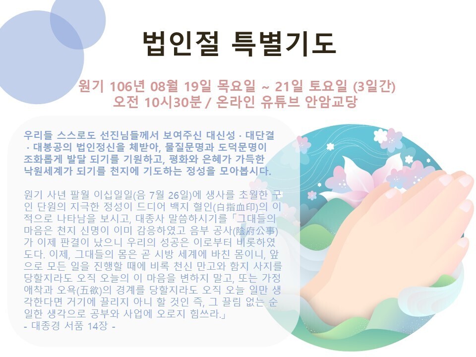- 장 소 : 온라인 안암교당 유튜브