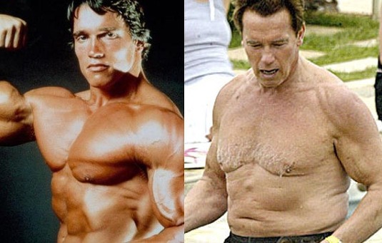 한때 터미네이터로 세계를 지배했던 몸짱의 모습은 어디로가고..아랫배 지긋이