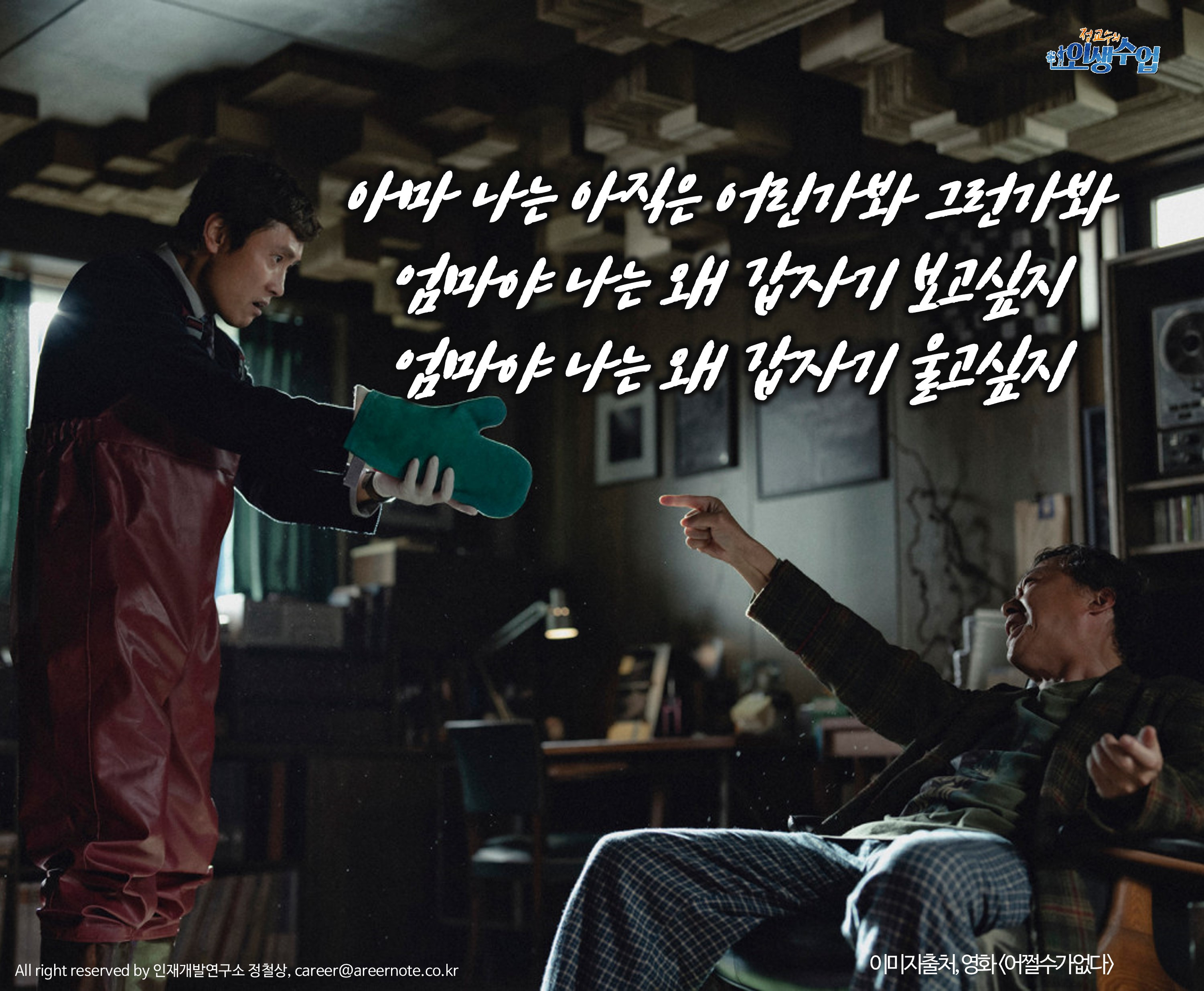 영화 《어쩔수가없다》는 어쩔 수 없다는 말이 단순한 체념이 아니라, 때로는 가장 인간적인 위로가 될 수 있음을 보여준다. 우리는 “어쩔 수가 없다”는 말을 반복하며, 불가항력적인 현실 앞에서 서로를 다독인다.