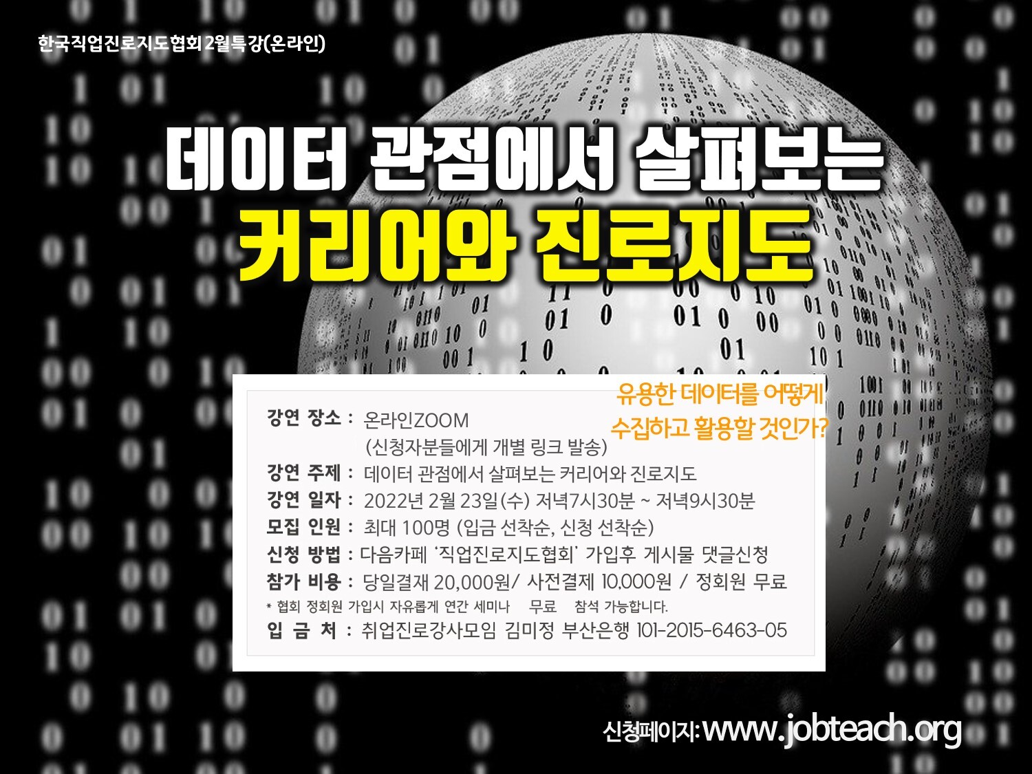 #커리어 #진로지도 #정보수집 #정보활용 #백기락 #백기락대표 #빅데이터 #커리어 #데이터분석 #빅데이터전문가 #특강 #강연 #교육 #직진협 #정기강연회 #온라인강연회 #한국직업진로지도협회 #강사모임 #취업강사 #진로강사 #대학교육 #진로교육 #취업교육 #취업진로지도 #취업진로지도전문가 #커리어코치정철상