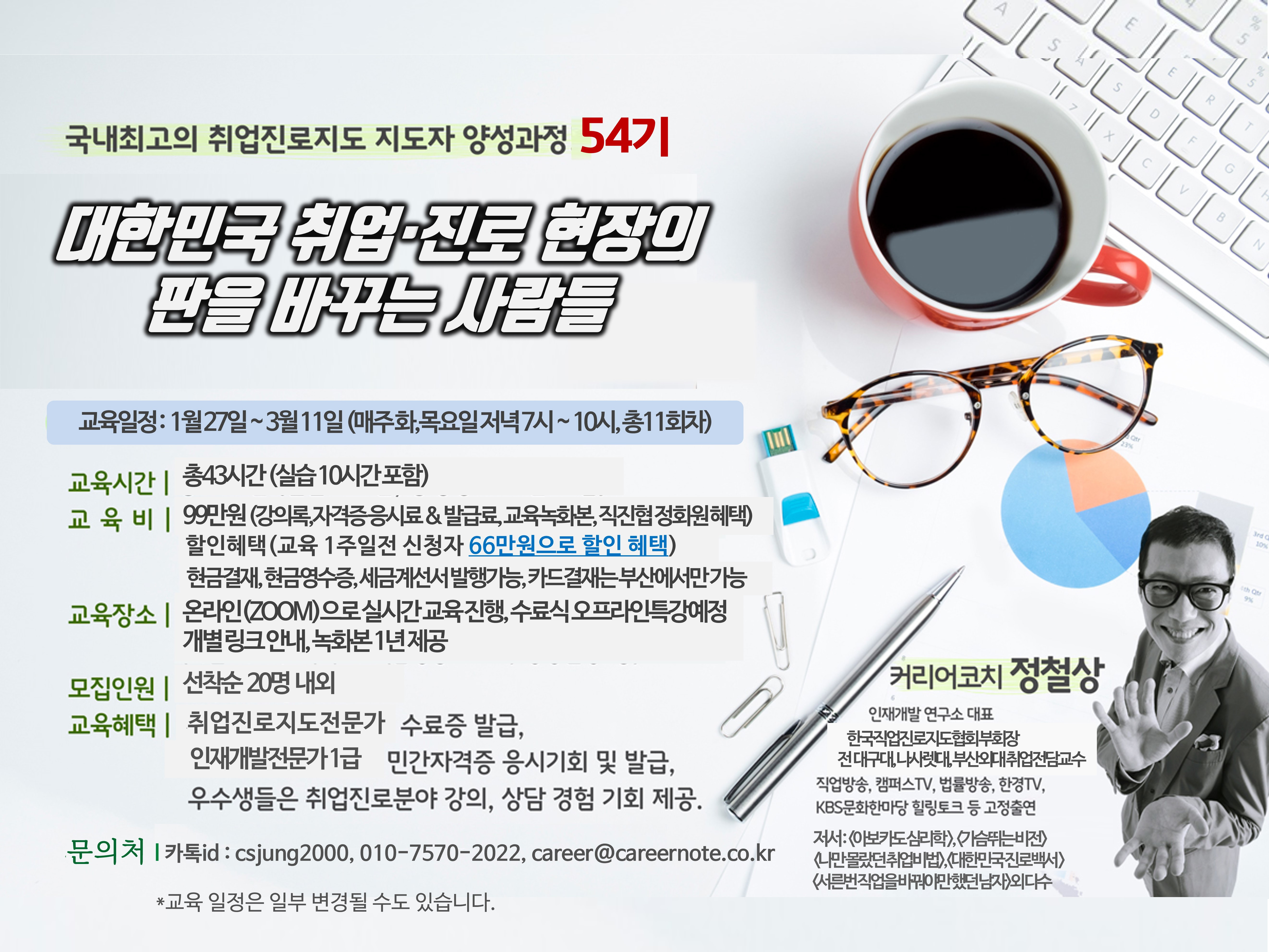 ‘취업진로지도전문가 54기 과정’이 오는 27일
