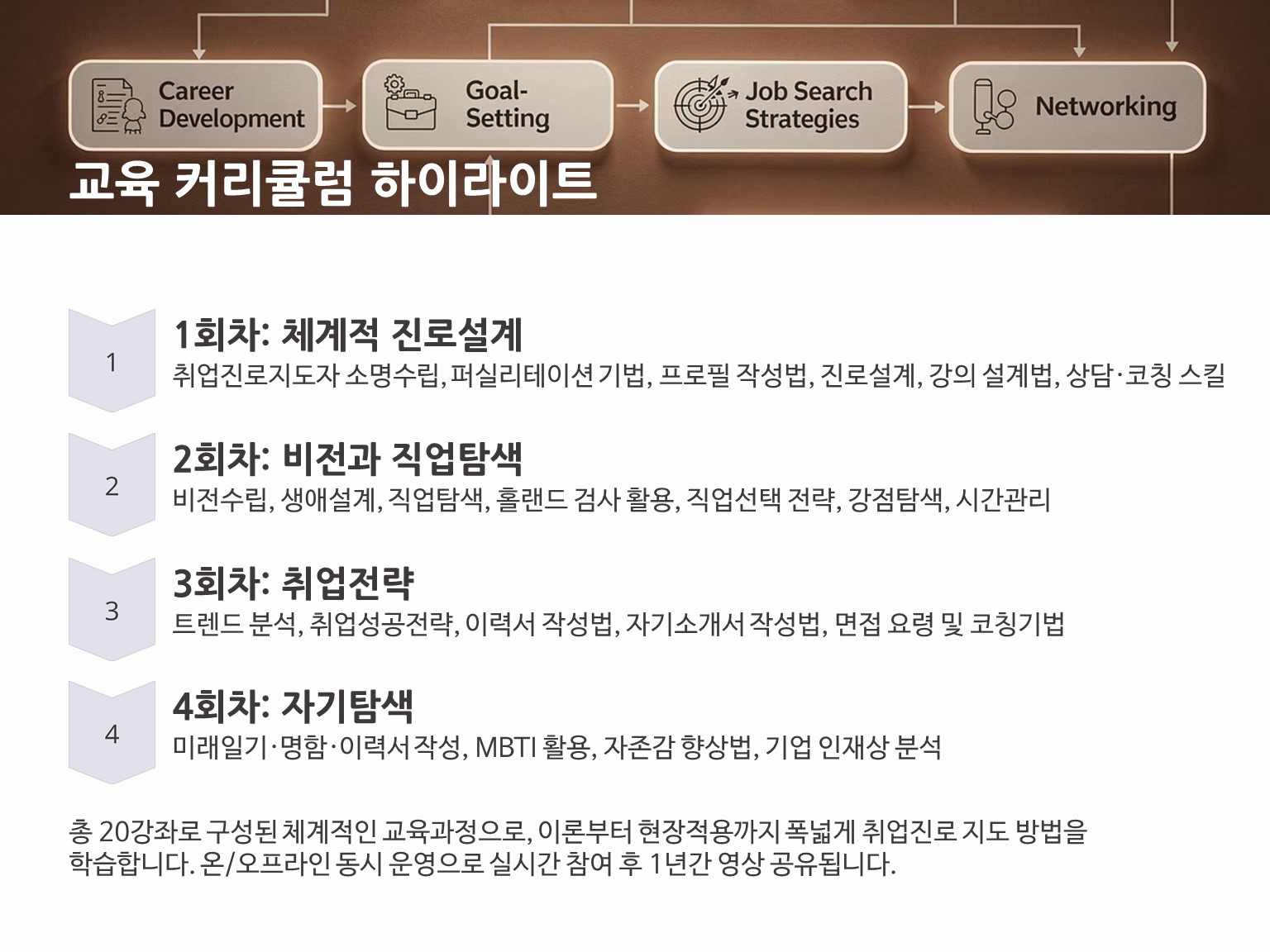 현장에서 바로 쓰이는 취업·진로 지도력을 갖춘 사람을 길러내는 과정입니다.