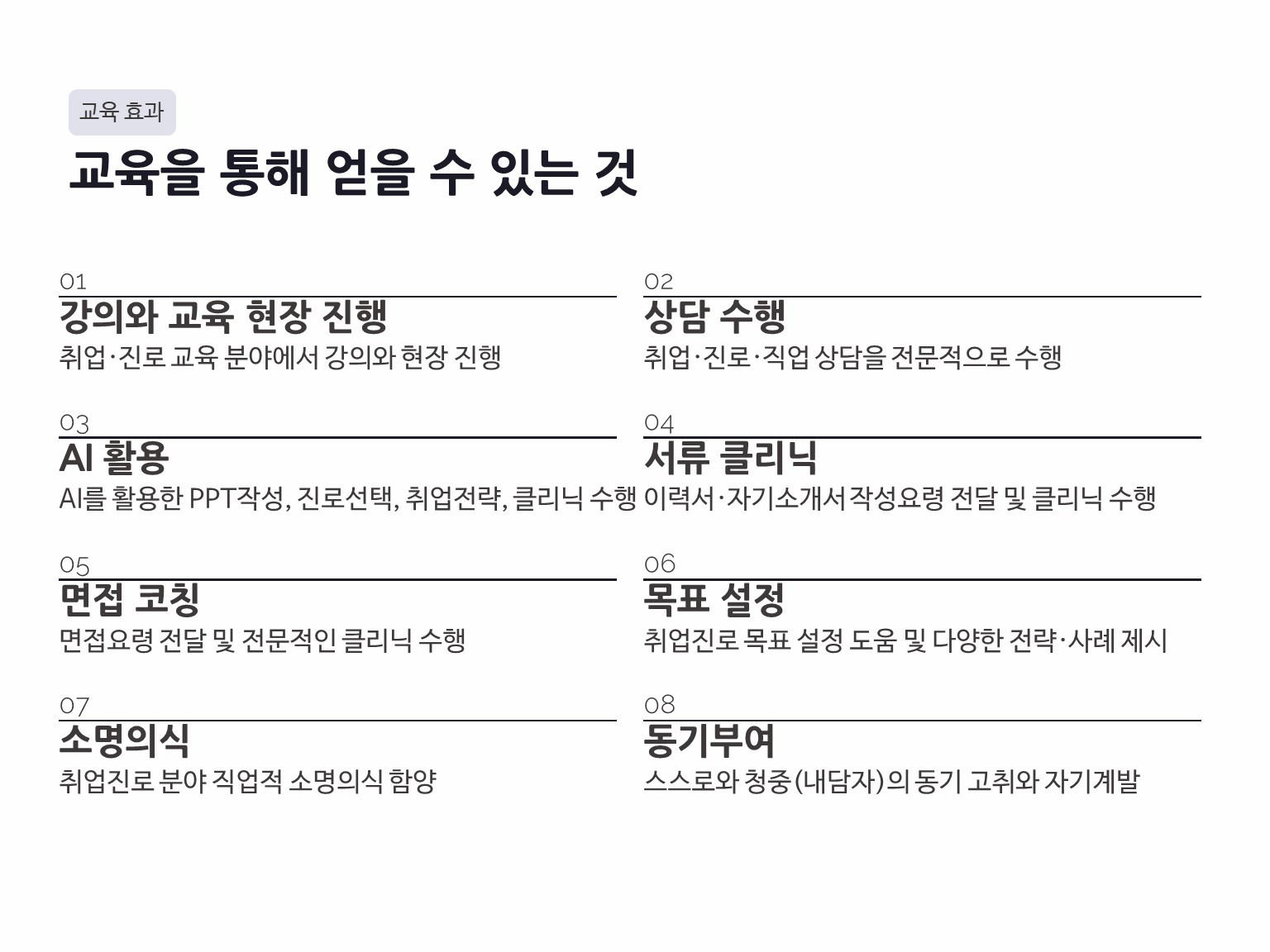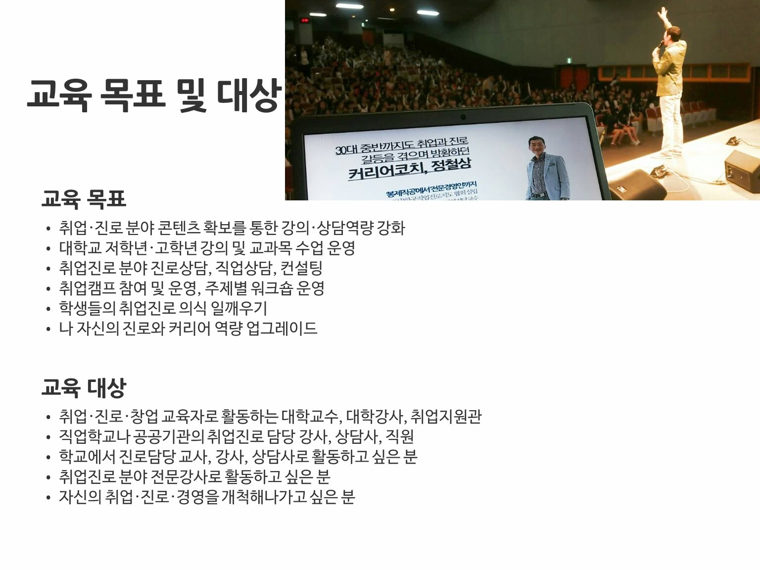 - 취업·진로 분야 전문 강사로 성장하고 싶은 분