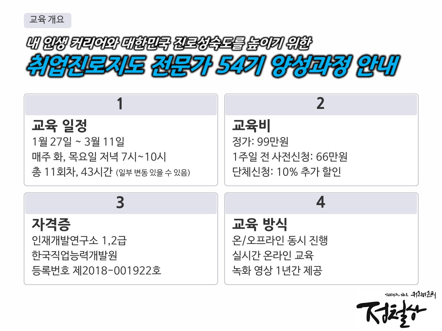 #취업지도자 #진로지도자 #취업교육 #진로교육 #취업진로지도 #강사양성교육 #취업진로지도전문가 #취업강사 #진로강사 #직업상담사 #취업컨설턴트 #커리어컨설턴트 #필수교육 #동기부여강사 #취업진로전문가 #취업전문가 #진로고민 #취업고민 #인생고민 #진로상담가 #진로코치 #직업상담 #취업교육 #진로성숙도 #대한민국진로수업 #인생수업 #커리어코치 #정철상