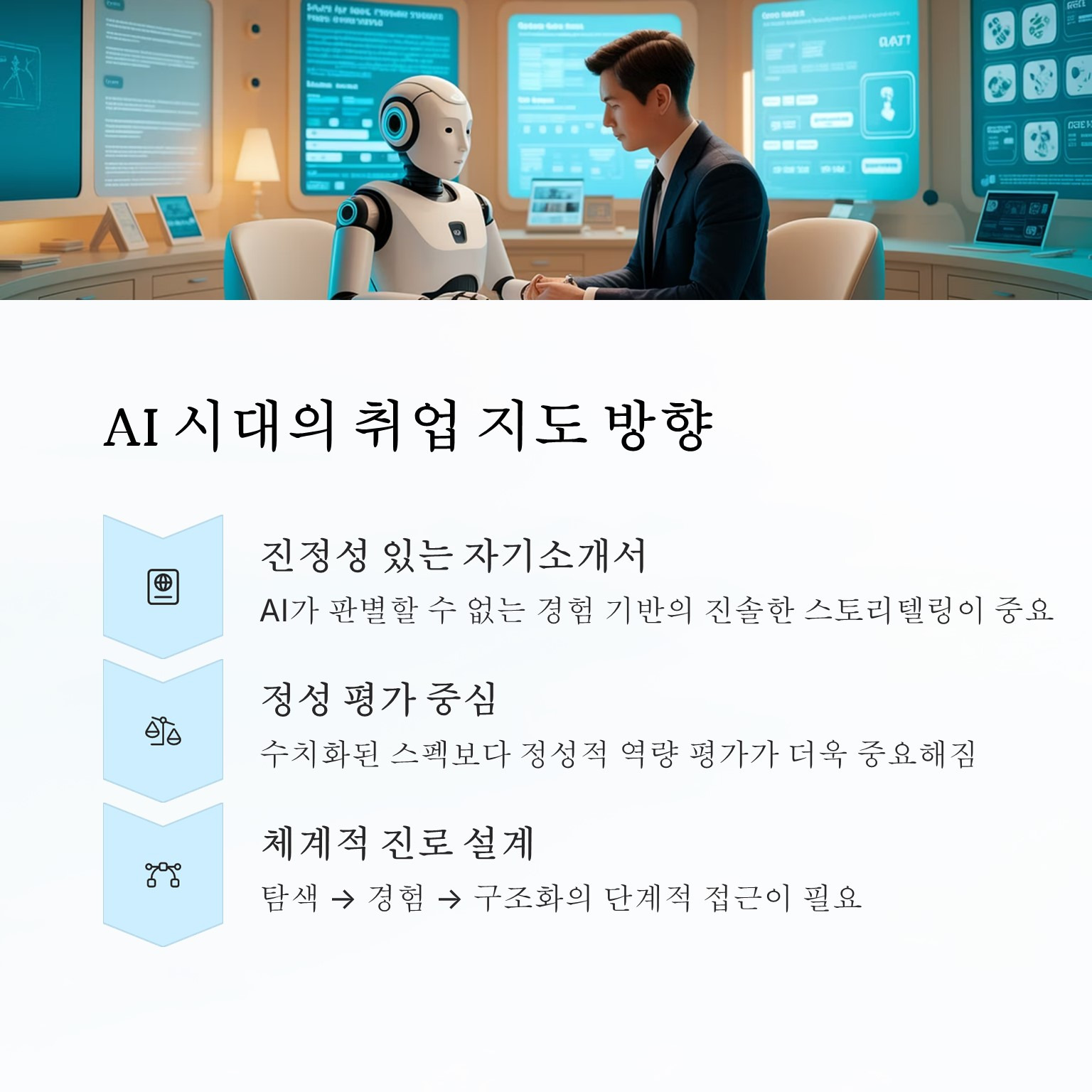 6. AI 채용 시대에는 진정성이 담긴 경험 기반 자소서가 중요하며, GPT 등 도구 사용에 의존하면 오히려 감점 요인이 될 수도 있다. 경험기반의 자기만의 노력이 들어가야만 한다.