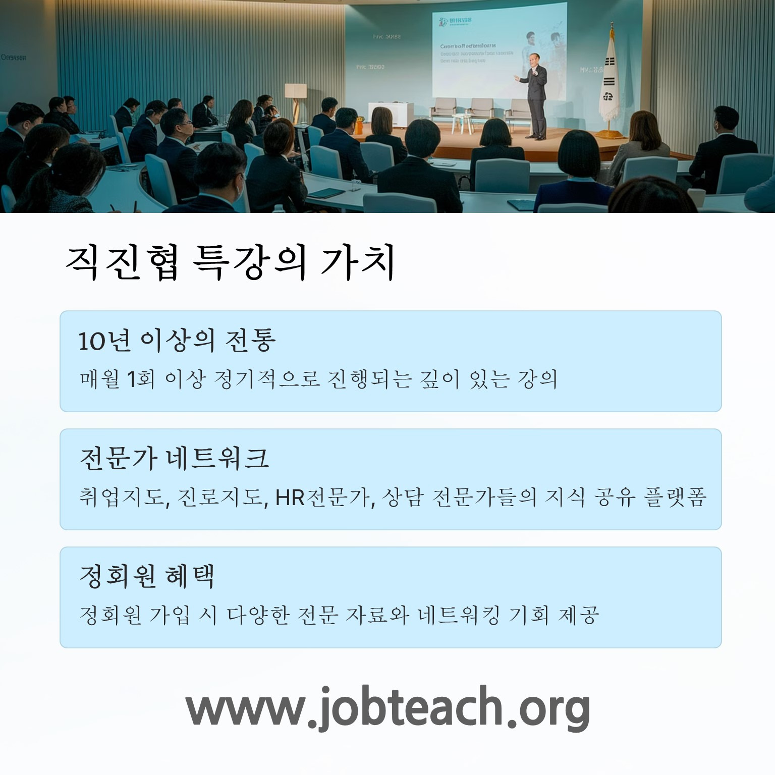 자신의 취업과 진로와 경력을 고민하고 역량을 강화하고자 하는 분들에게는 누구에게나 개방된 모임이나 특히 취업, 진로, 직업, 창업 분야에서 강의하시거나 상담하시거나 교육기관에 근무하시는 분들을 위해 최적화된 모임입니다.