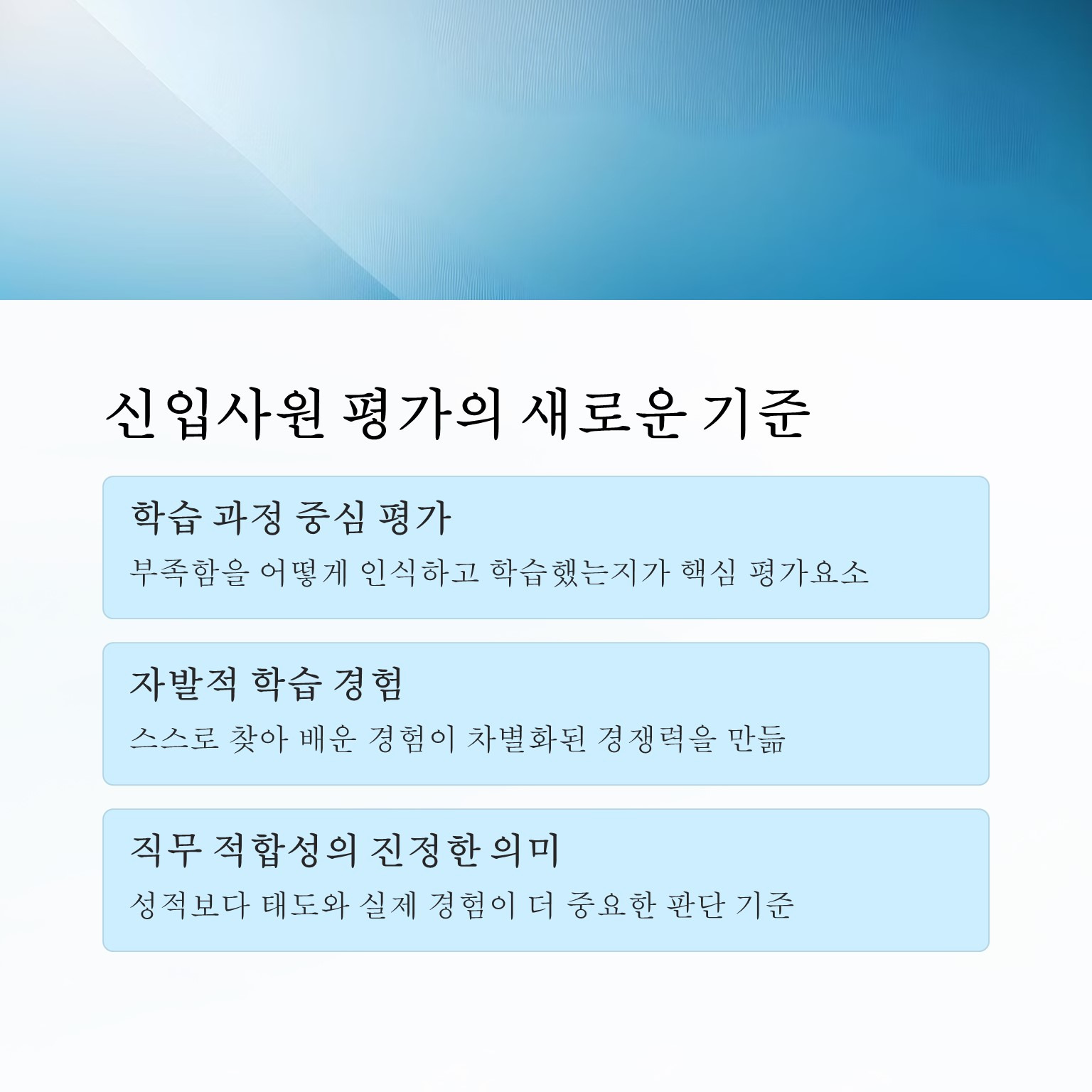 4. 신입사원 평가의 핵심은 완성된 능력이 아니라, 조직에서 요구하는 역량의 부족함을 어떻게 학습하고 보완해 나갔는지를 평가하는 과정이다.