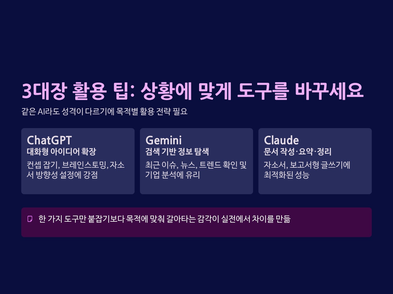 같은 AI라도 성격이 다르기에 달리 활용해야 합니다.