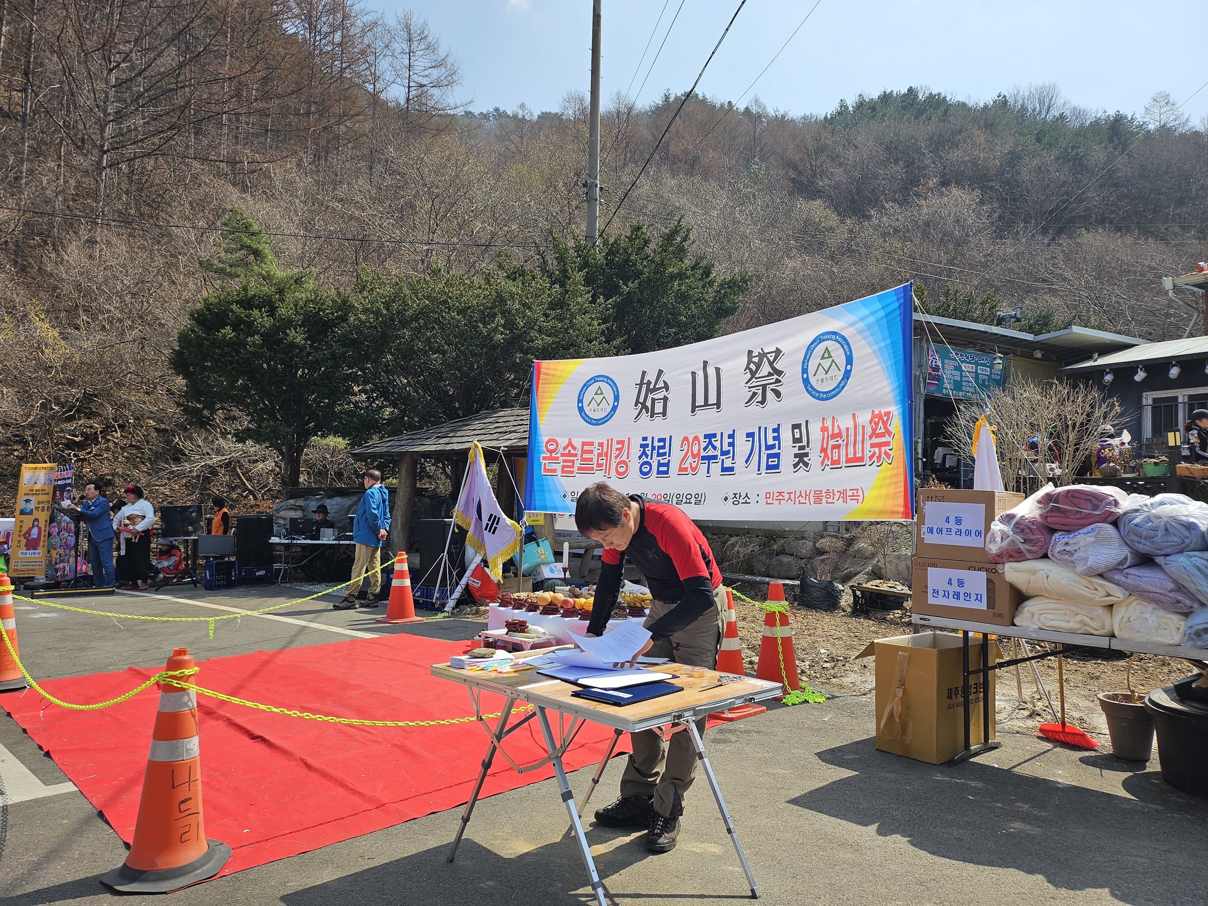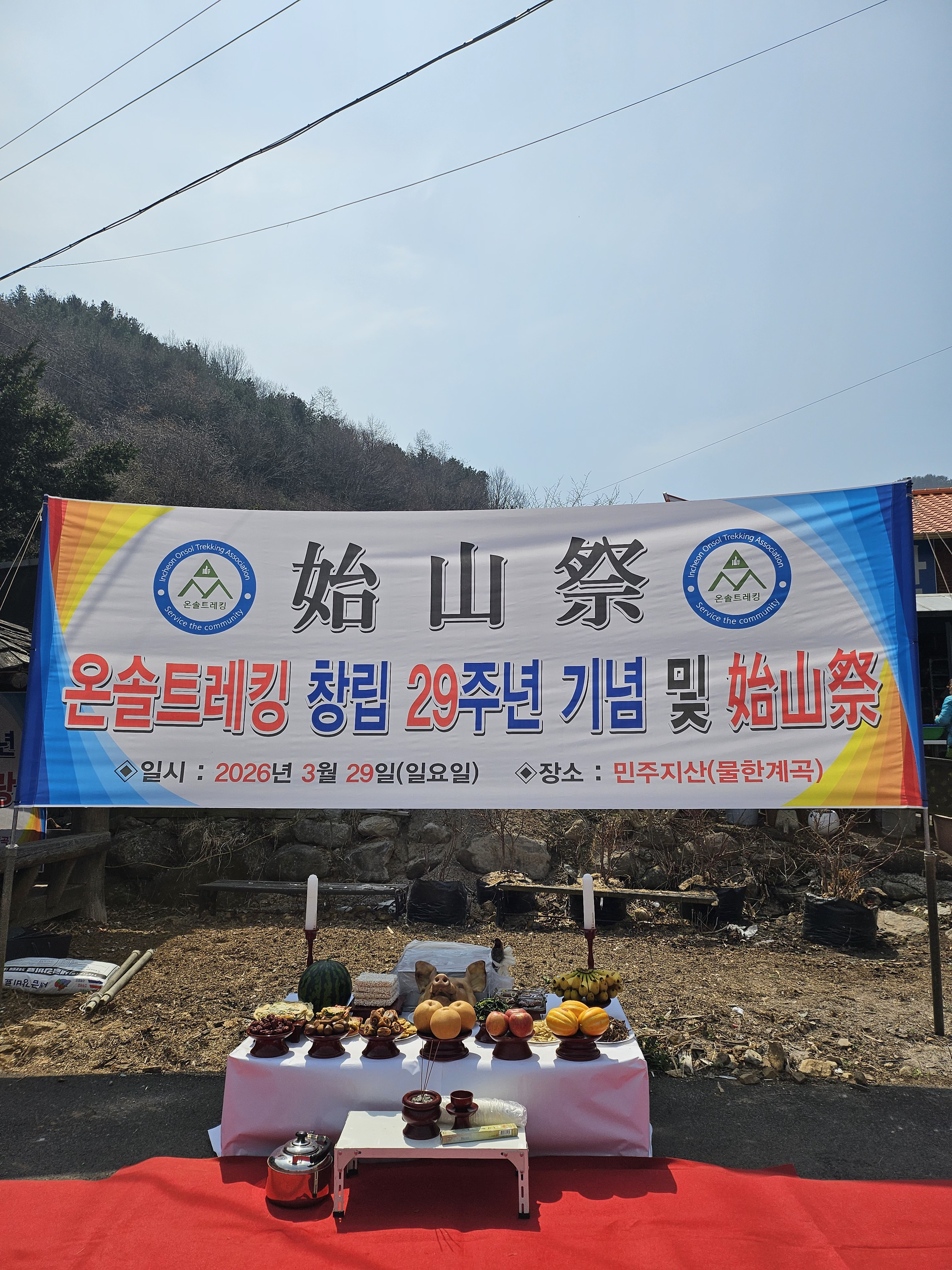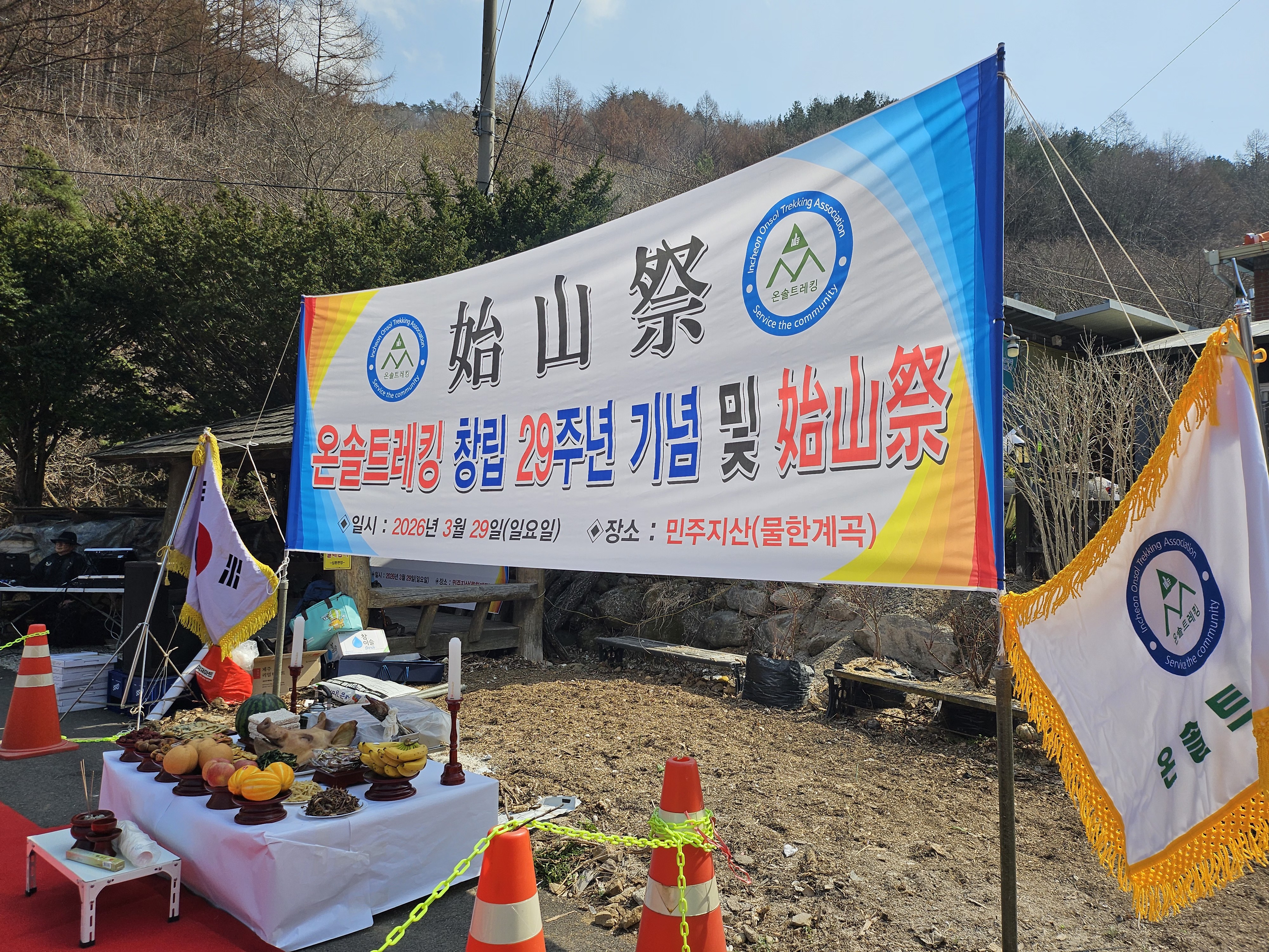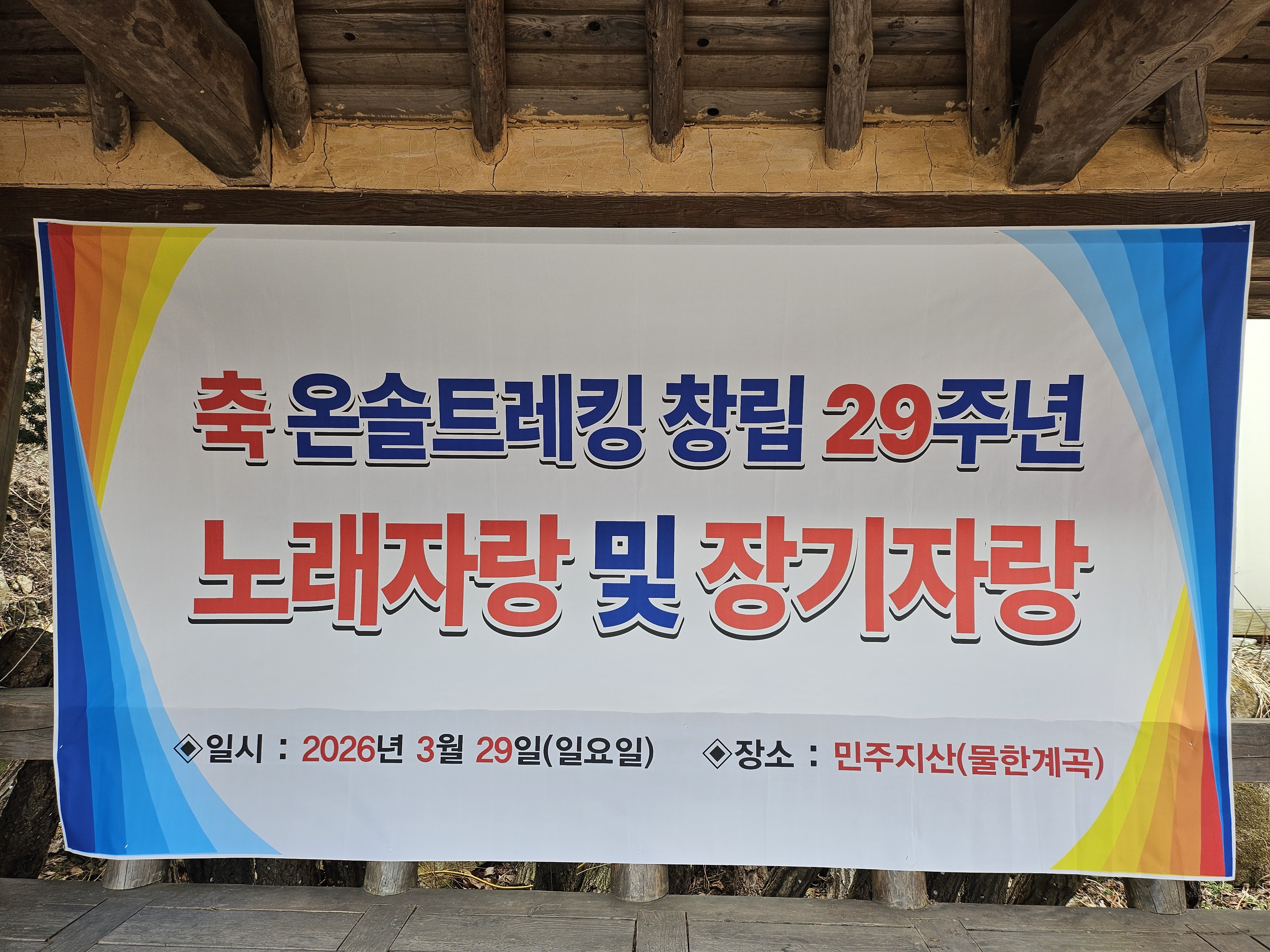 2026년 29주년 "온솔트레킹" 시산제 행사 작성자짹짹이|작성시간26.04.01|조회수219 목록 댓글 3 글자크기 작게가 글자크기 크게가 #해와달#시산제행사#온솔트레킹#29주년#특별행사#민주지산#물한계곡 #온솔트레킹#온솔여행사#인천산악회#인천트레킹#시산제행사#경품행사 다음검색 현재 게시글 추가 기능 열기 북마크 공유하기 신고 센터로 신고 댓글 댓글 3 댓글쓰기 답글쓰기 댓글 리스트 작성자온솔 | 작성시간 26.04.01 수고. 했어요^^~ 작성자짹짹이 작성자 본인 여부 작성자 | 작성시간 26.04.01 작성자플러스 | 작성시간 26.04.02 와우 아주 디테일하게 잘 담으셨네요~수고 많이 하셨습니다 ~^^ 댓글 전체보기