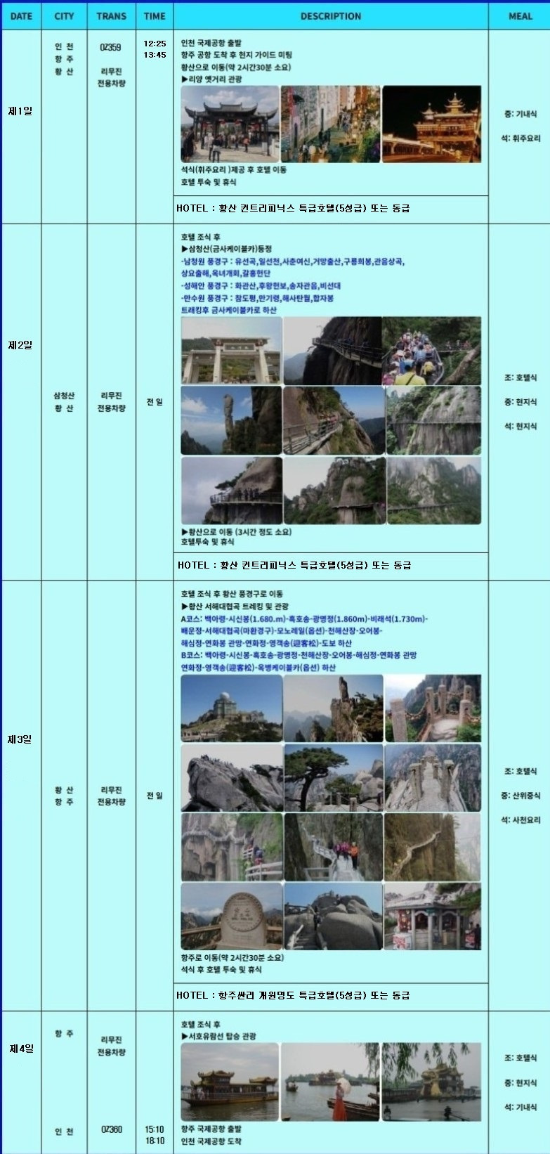 현충일 황금연휴 항주공항 직항 황산(서해대협곡) - 삼청산(잔교) 2026년6월05일(금,12시30분) - 6월08일(월)3박4일 작성자온솔|작성시간26.04.07|조회수120 목록 댓글 1 글자크기 작게가 글자크기 크게가 다음검색 현재 게시글 추가 기능 열기 북마크 공유하기 신고 센터로 신고 댓글 댓글 1 댓글쓰기 답글쓰기 댓글 리스트 작성자짹짹이 | 작성시간 26.04.12 백○○님 예약 감사합니다 댓글 전체보기