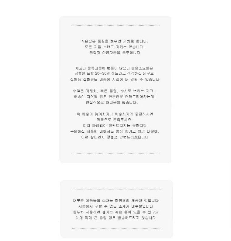 저희 몰 상품들은 주문하시면 제작상품과 유사한 과정으로 준비되기 때문에