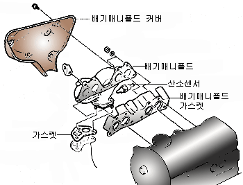 배기 매니폴드에는 연소되고 난 가스의 잔류산소량을 검출하는 산소센서가 부착된다.