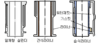 이러한 라이너를 별도로 삽입하는 이유는 실린더 내경이 마멸되었을 때 신품 라이너와 용이하게 교환하기 위해서이다.