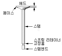 엔진의 출력은 밸브 헤드부분 지름의 크기에 따라 밀접한 관계를 가지며, 밸브 지름이 큰 편이 흡배기 효율이 좋으나 배기밸브는 냉각이 곤란하므로 흡기밸브보다 밸브 지름을 작게 하고 있다.