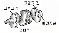 또한 크랭크 축 내부에는 윤활을 위한 오일 구멍이 저널에서 핀까지 가로 질러 가공되어 있다.