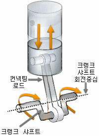 엔진의 일반적인 구조는 그림과 같이 피스톤(Piston), 커넥팅 로드(Connecting rod), 크랭크 축(Crank shaft)의 기구로 구성되어 있으며, 진원통으로 된 실린더 안에서 피스톤의 기밀을 유지하면서 직선 왕복운동을 하여 그 왕복운동을 커넥팅 로드를 통해 크랭크 축의 회전운동으로 변환시킨다.