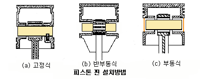부동식은 피스톤 보스 양쪽에 스냅링이 설치 되어 있고 커넥팅 로드의 작은 쪽에는 부싱이 끼워져 있는 형식으로 디젤 엔진에서 많이 이용되고 있다.