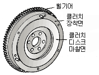 또한, 뒷면에는 플라이 휠과 클러치 및 변속기가 장착된다.