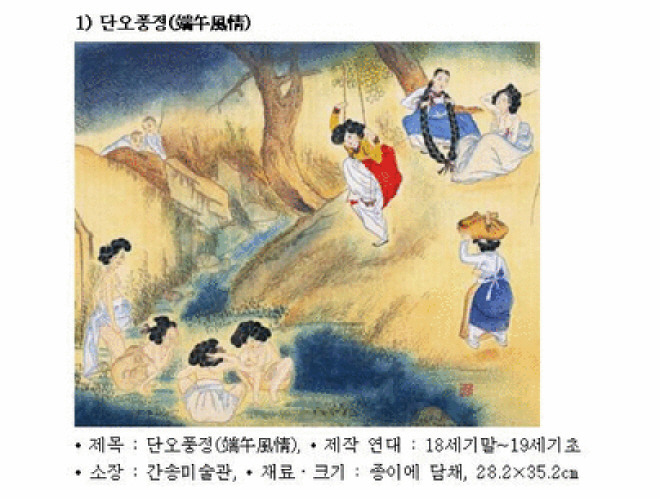 단옷날에는 외출이 어려웠던 부녀자들도 밖으로 나와 그네를 뛸 수 있었다고 합니다.