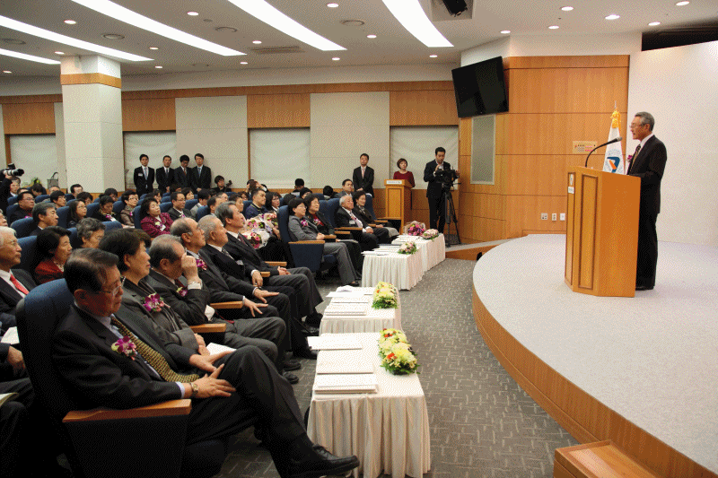 (마무리 발언) 끝으로 우리 청소년의 문제는 결국 우리 어른들의 자화상입니다. 우리 스스로 가정을 중시하고, 법과 질서를 지키며, 약자를 배려하고 사랑하는 따뜻한 세상을 만들어야 합니다. 학교폭력을 예방하는 것도, 학교폭력으로 고통 받는 이 땅의 청소년들을 구제하는 것도, 결국 우리 국민 한 사람 한 사람의 올바른 생활과 청소년에 대한 관심에서 출발합니다. 오늘 이 영광스러운 수상을 통해서 저와 우리 청예단은, 더욱더 무거운 짐을 지게 되었음을 국민 앞에 고백합니다. 그리고 이 상의 영광을 그동안 저희를 믿고 성원해 주신 수많은 회원님들과 자원봉사자들, 그리고 시민들에게 바칩니다. 앞으로도 불광불급의 정신으로, 더욱 혼신의 힘을 다하겠습니다. 항상 초심을 잃지 않고, 더 열심히 헌신해서 아산상의 권위를 발전시키고, 이 고마움에 보답하겠습니다. 감사합니다.