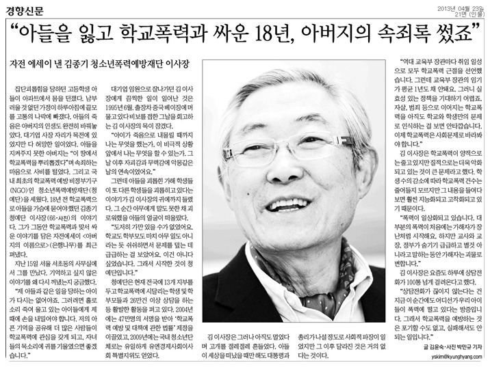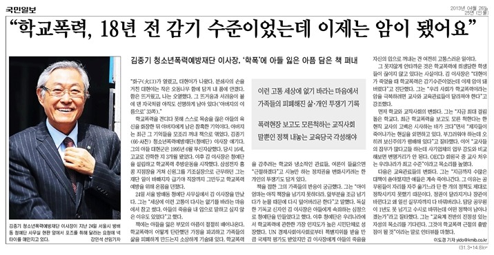 . 이번 책 출간을 통해 새로운 경험을 하고 있다. 가장 중요한 것은, 우리 청예단 출범에 대한 구체적인 배경과 과정이 명확히 기록되었다는 사실과, 둘째 독자들에게 청예단에 대해 그 진정성과 신뢰감을 심어 준다는 사실이라고 생각한다. 물론 내 개인에 대한 숨김 없는 슬픈 얘기와, NGO를 만들어 18년간 운영한다는 것이 얼마나 어려운 일인가에 대한 진실한 스토리가 큰 감동을 준 것이 틀림없는 사실이다 .