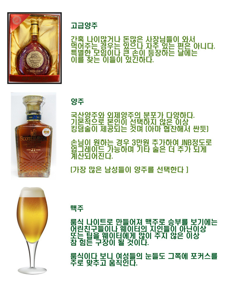 룸에서 놀기를 바란다. 그리고 주말에 수량이 많다 어떻다는 그런 웨이터의 감언이설엔