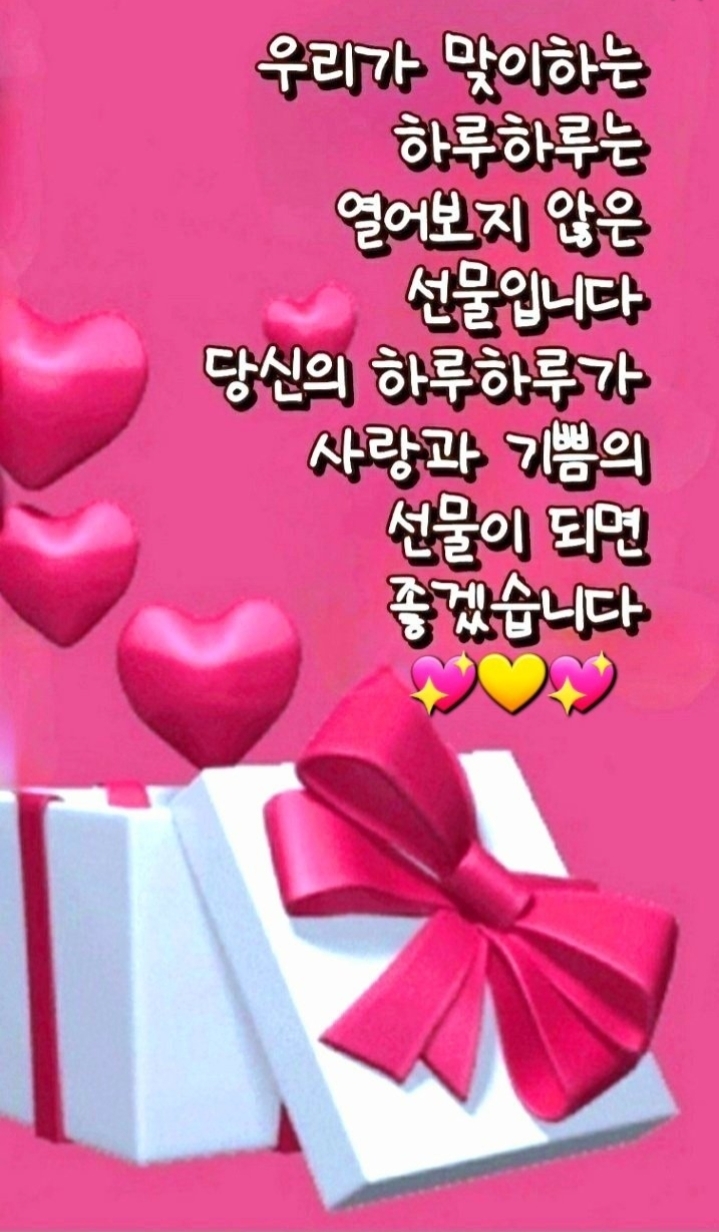 (1.7)수요일에 전하는 힐링 메세지 작성자쉐도우영.|작성시간26.01.07|조회수287 목록 댓글 10 글자크기 작게가 글자크기 크게가 다음검색 현재 게시글 추가 기능 열기 북마크 공유하기 신고 센터로 신고 댓글 댓글 10 댓글쓰기 답글쓰기 댓글 리스트 답댓글 작성자쉐도우영. 작성자 본인 여부 작성자 | 작성시간 26.01.07 미소지음 아직 안드렸는데요 답댓글 작성자미소지음 | 작성시간 26.01.07 쉐도우영. ㅎㅎㅎㅎㅎ 답댓글 작성자쉐도우영. 작성자 본인 여부 작성자 | 작성시간 26.01.07 미소지음 멋진 로즈데이 되세요베프 미소지음님 따랑합니다 ❤️ 이미지 확대 답댓글 작성자미소지음 | 작성시간 26.01.07 쉐도우영. 우~~와울트라캡숑 짱입니다 ㅋ🍷⚘️ 이미지 확대 답댓글 작성자쉐도우영. 작성자 본인 여부 작성자 | 작성시간 26.01.07 미소지음 고맙습니다 나의 소중한 인연 미소지음님 ❤️ 댓글 전체보기