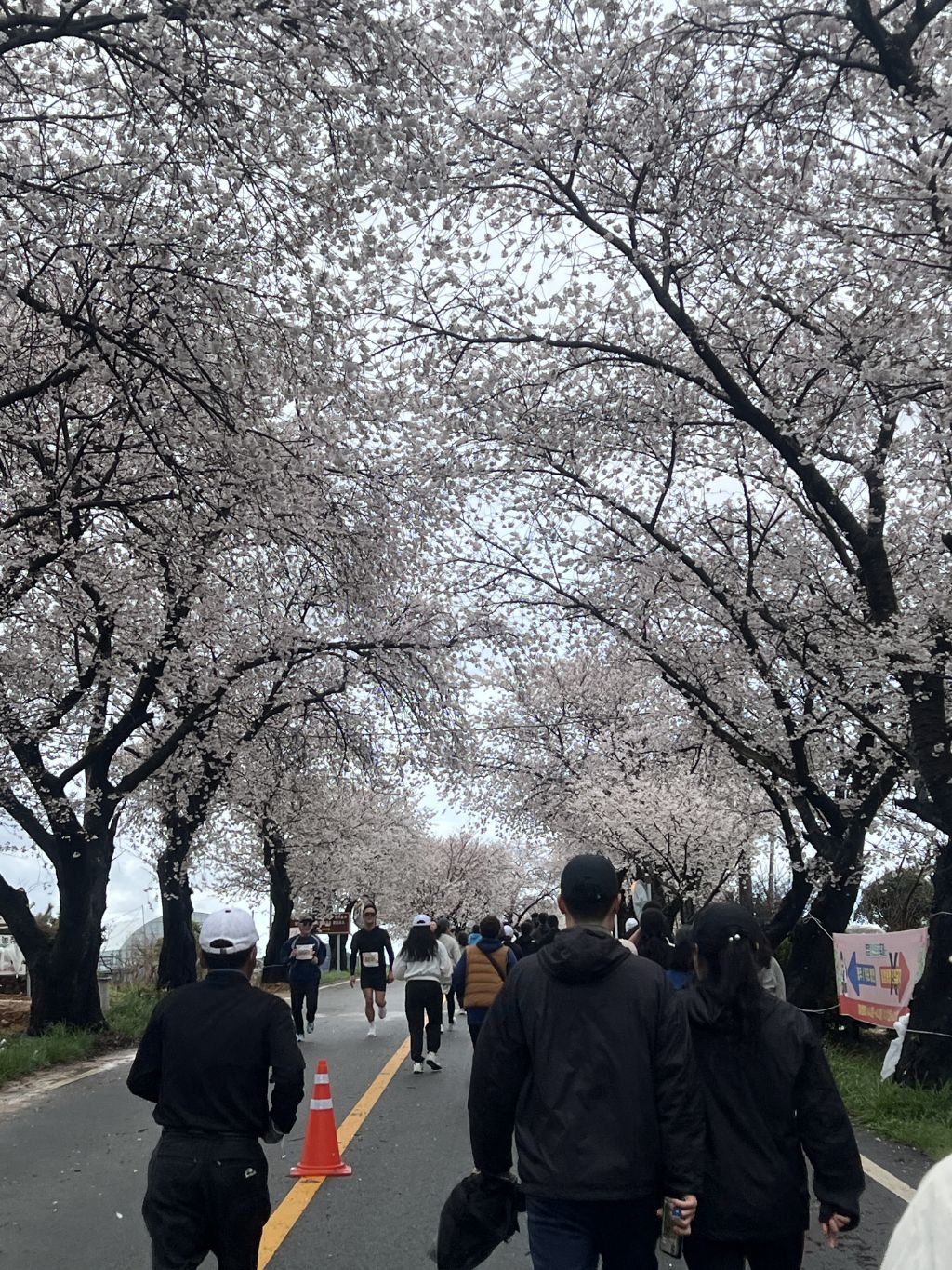 주고 휘날리는 벚꽃을 벗삼아 뛰니