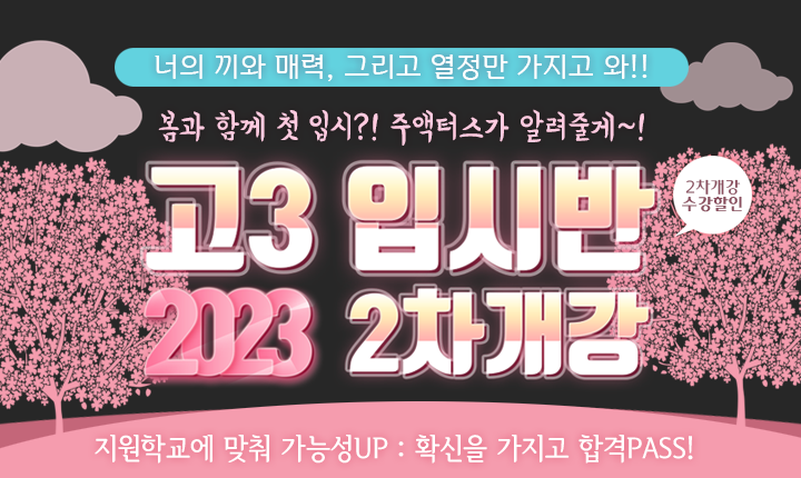 2023학년도 재입시반 (N수, 반수, 편입) 수시최강 합격반 대개강!!