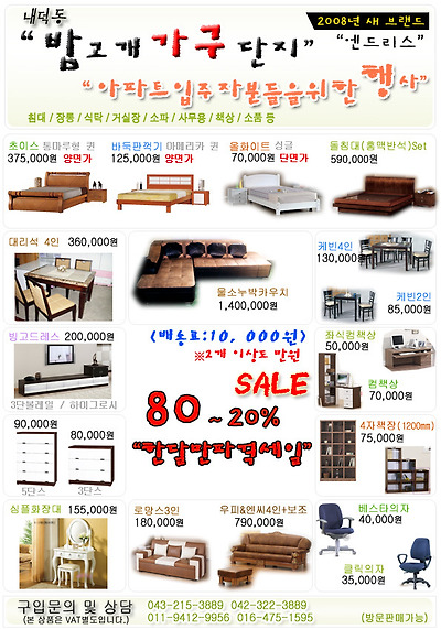 ★★★봄 맞이 가구 컬렉션 !! 동일한 품질의 최저가 가격으로 선보입니다.★★★ 작성자침대쟁이|작성시간08.02.23|조회수11 목록 댓글 0 글자크기 작게가 글자크기 크게가 24시간 상담 가능합니다.. 방문하시기 어려우신 분들은 카다로그 상담 가능합니다. 엔드리스 마케팅 팀장 엄대용 올림 016-475-1595 다음검색 현재 게시글 추가 기능 열기 북마크 공유하기 신고 센터로 신고 댓글 댓글 0 댓글쓰기 답글쓰기 댓글 리스트